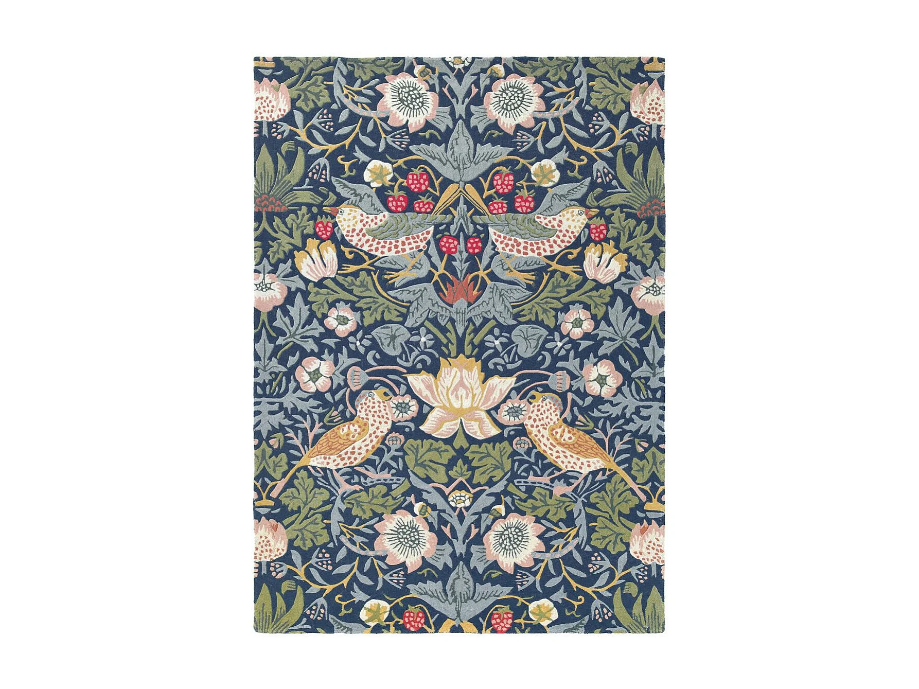 tapis salle à manger 250x350 fait à la main en laine indigo motif floral