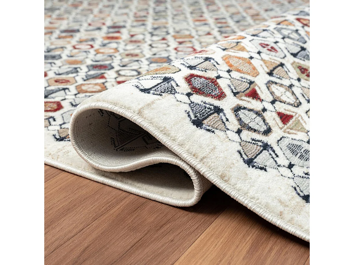 tapis chambre 120x160 tissé rouge et jaune rectangle motif géométrique GUZELLE A