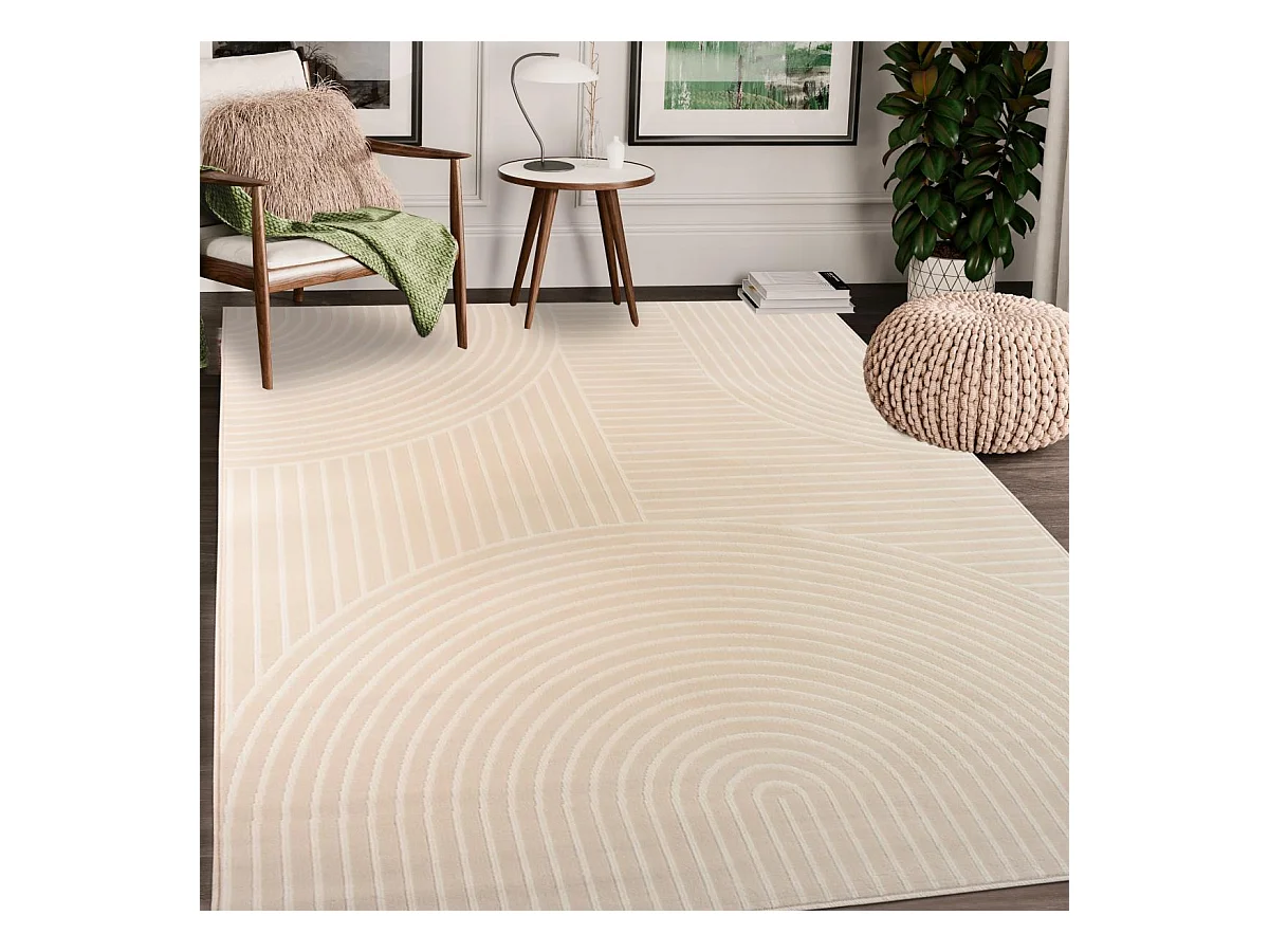tapis salon 120x170 tissé crème rectangle motif géométrique LYN1 COURLI