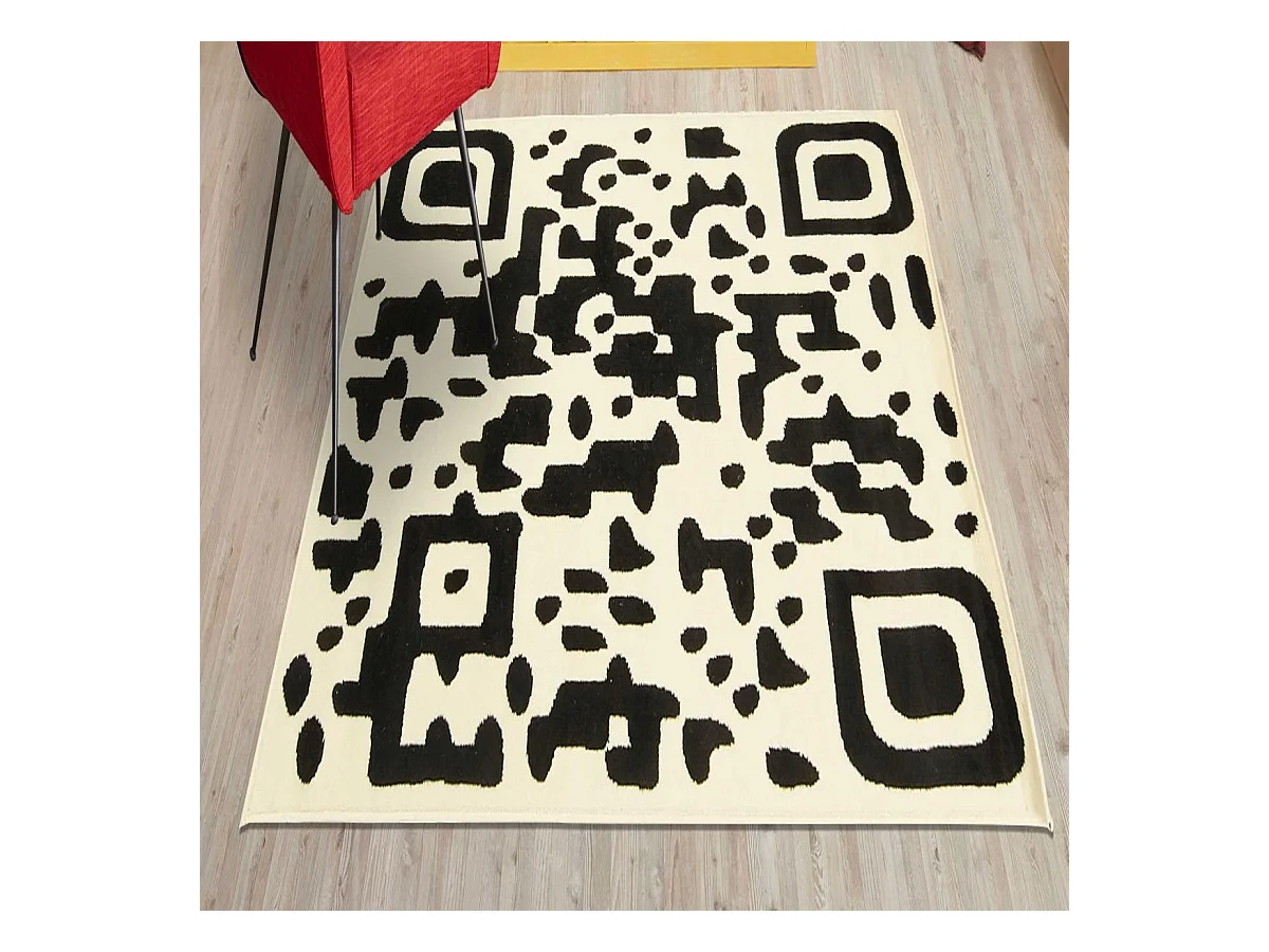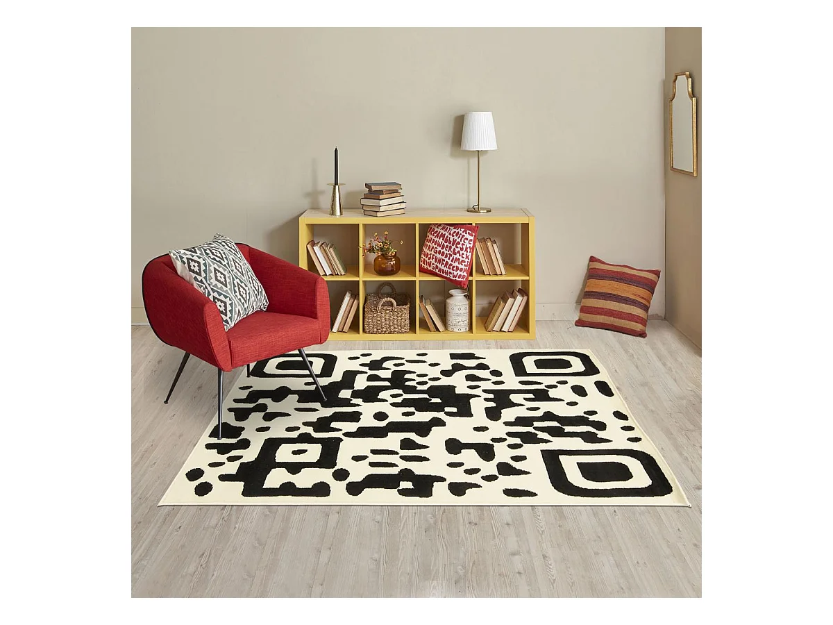 tapis salon 120x170 tissé noir et blanc rectangle motif géométrique LYN1 VINILO