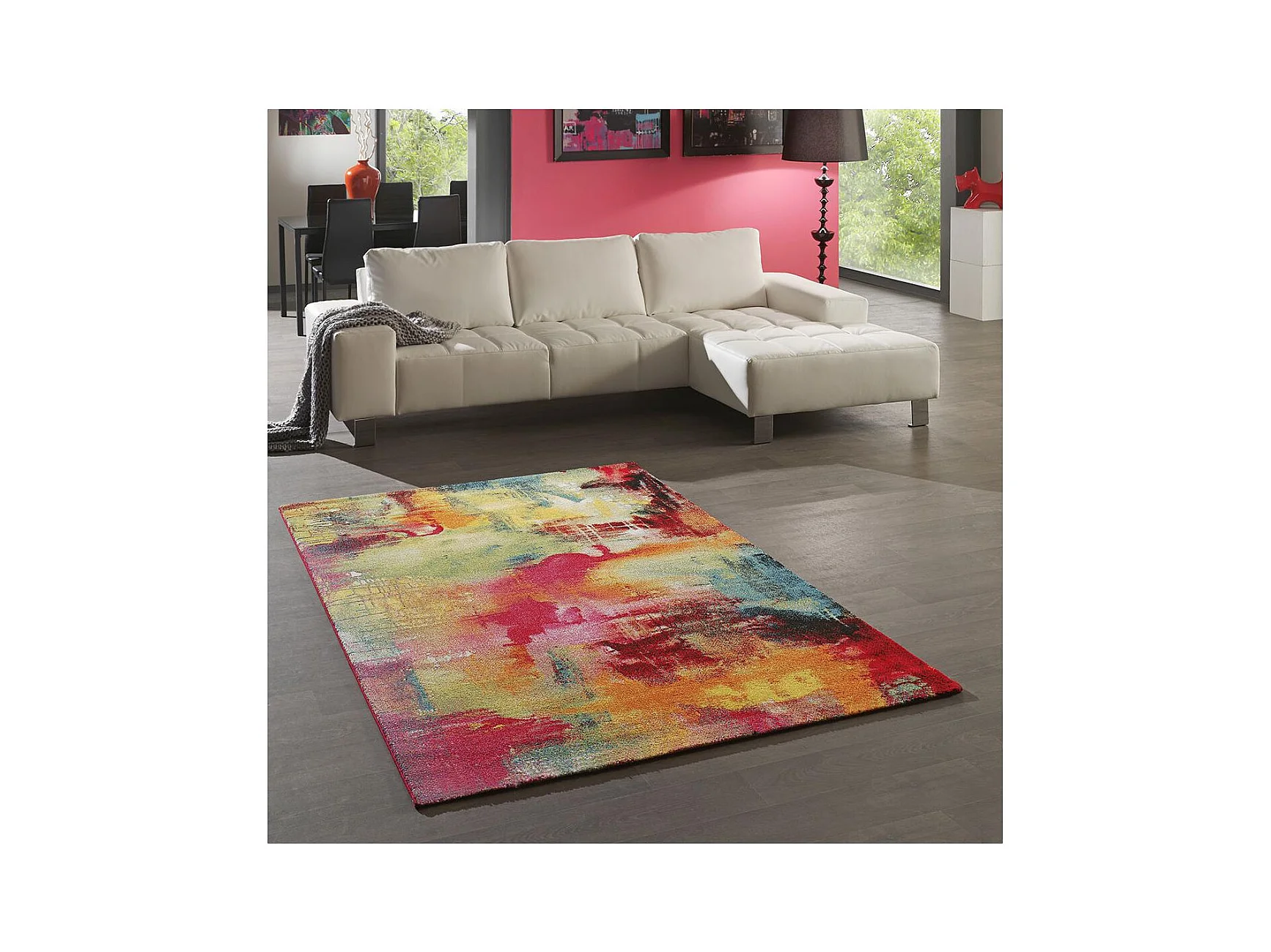 tapis salon 120x170 tissé multicolore rectangle motif géométrique LYN6 CARI