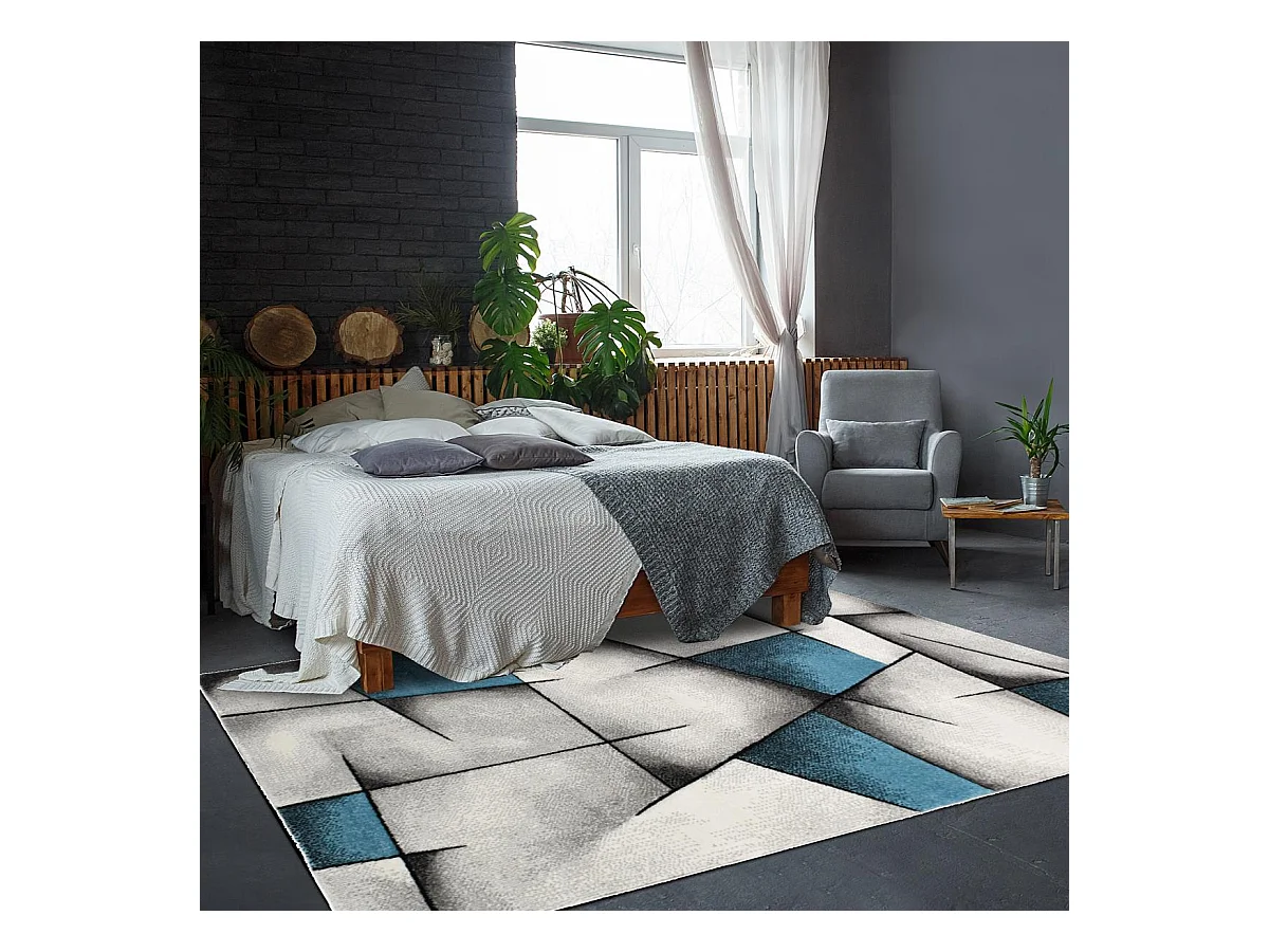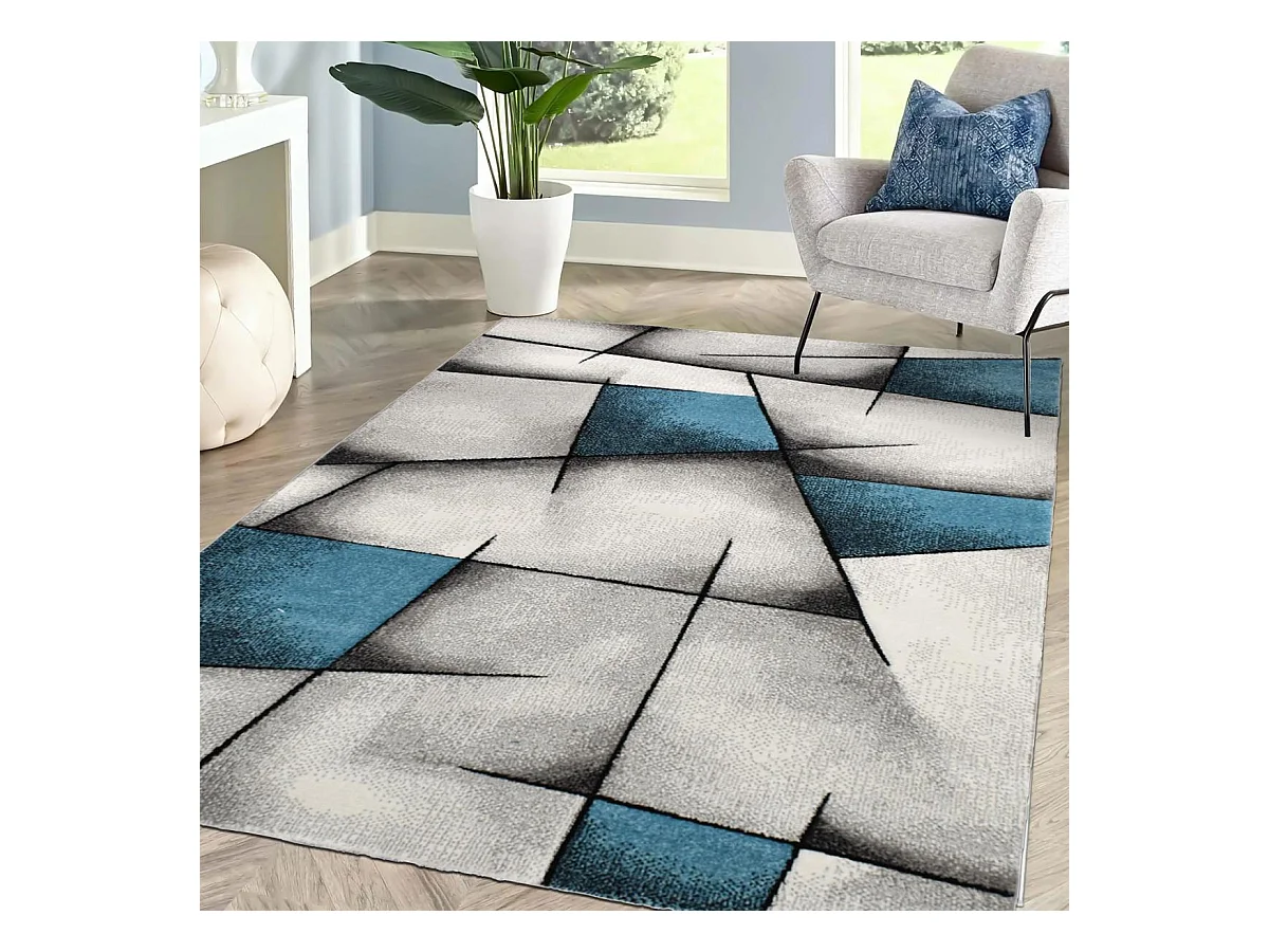 tapis salon 120x170 tissé turquoise rectangle motif géométrique TRIANGULA