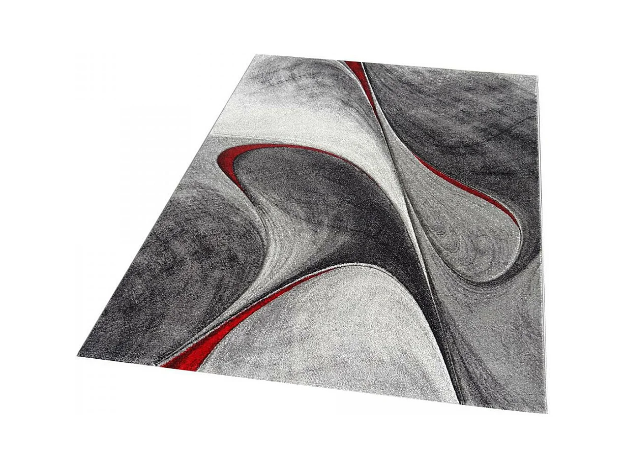 tapis de couloir 80x150 tissé rouge et gris motif géométrique CARARELLE