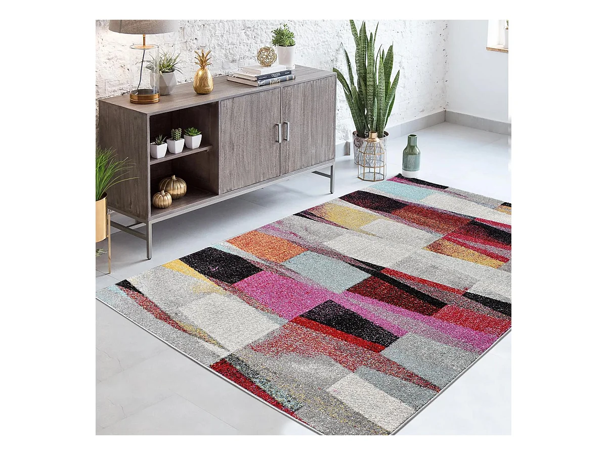 tapis salon 160x230 tissé multicolore rectangle motif géométrique LYN6 BRIK
