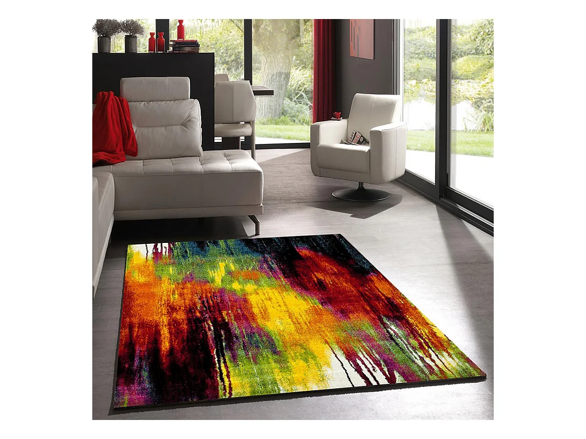Tapis carré 160x160 multicolore motif géométrique pour salon et chambre
