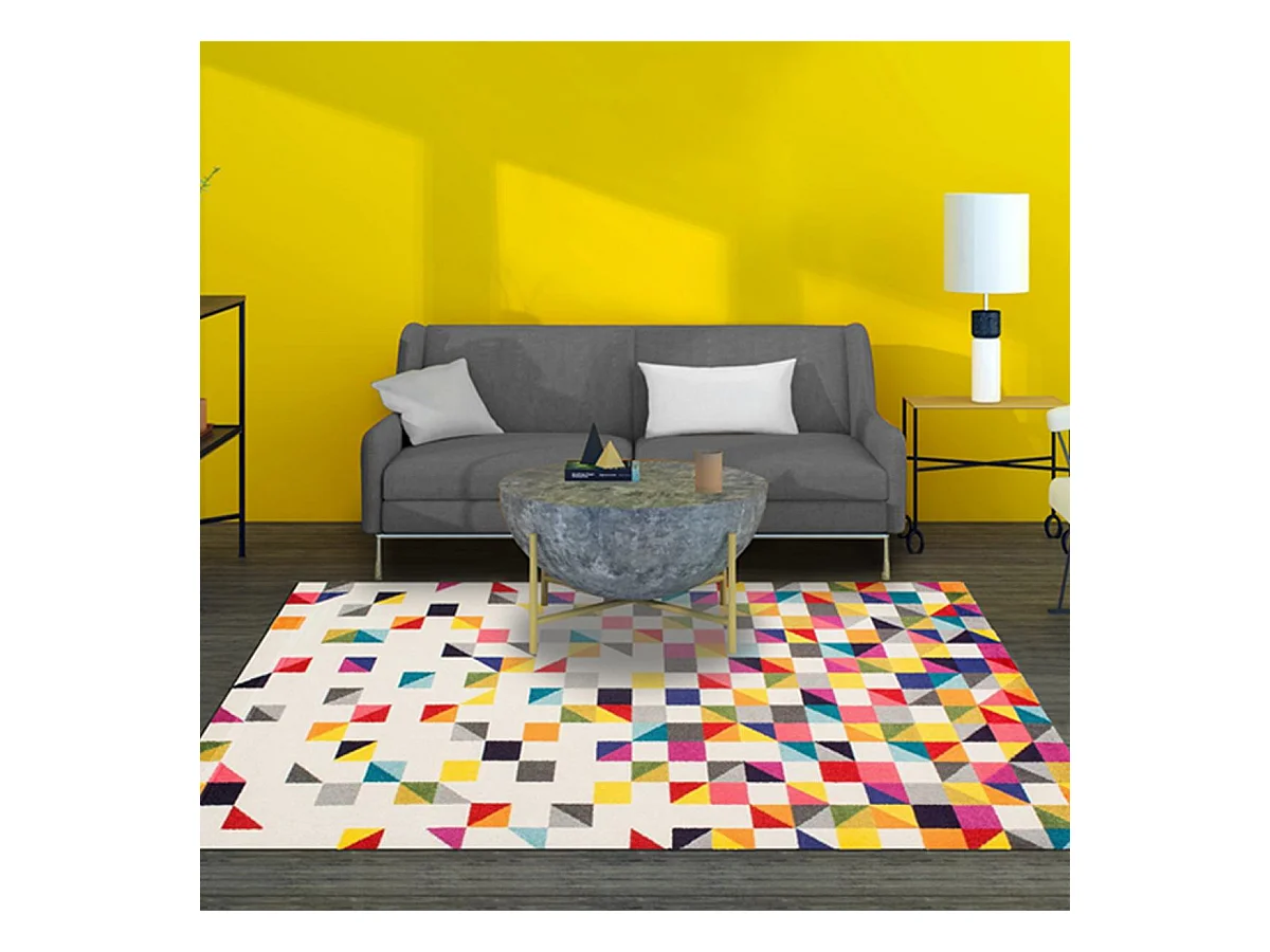 Tapis carré 160x160 multicolore motif géométrique pour salon et chambre