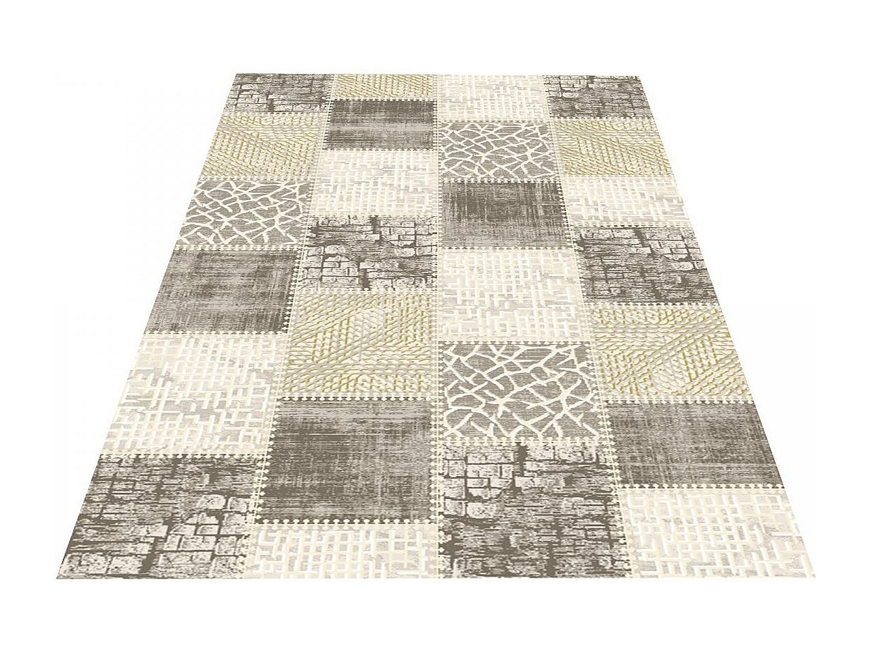 tapis salon 160x220 tissé marron et beige rectangle motif géométrique LYN7 SILICA