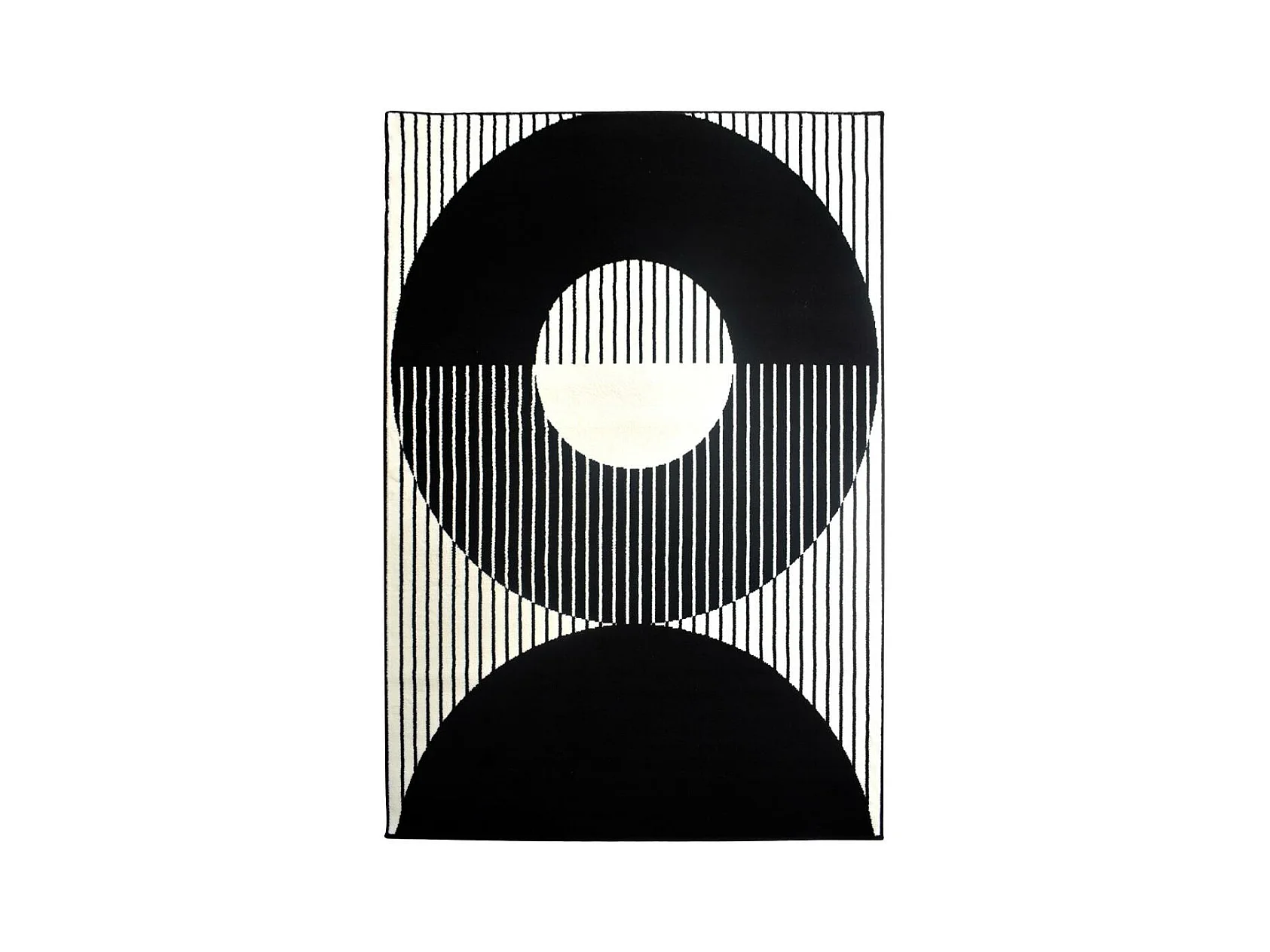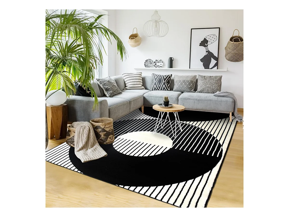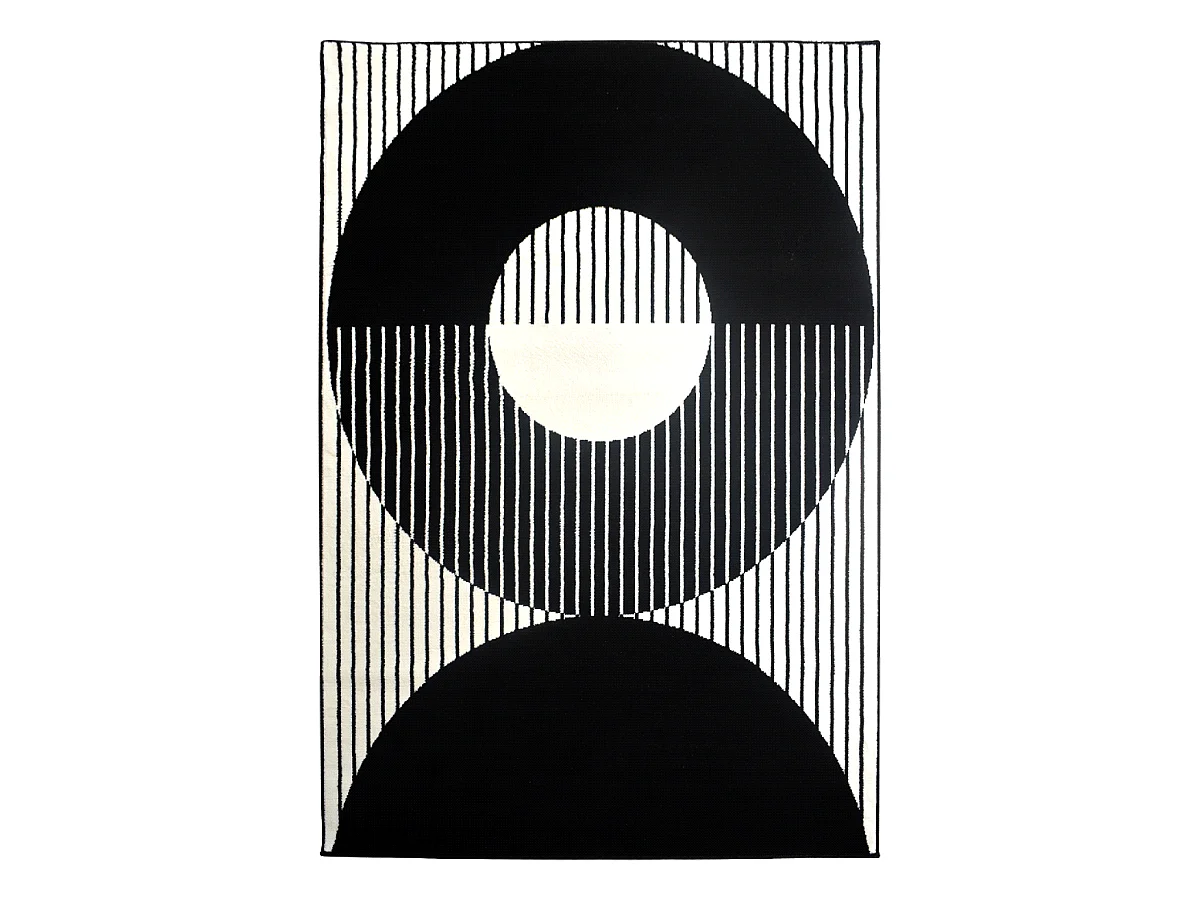tapis salon 160x225 tissé noir et blanc rectangle motif géométrique LYN1 VINILO
