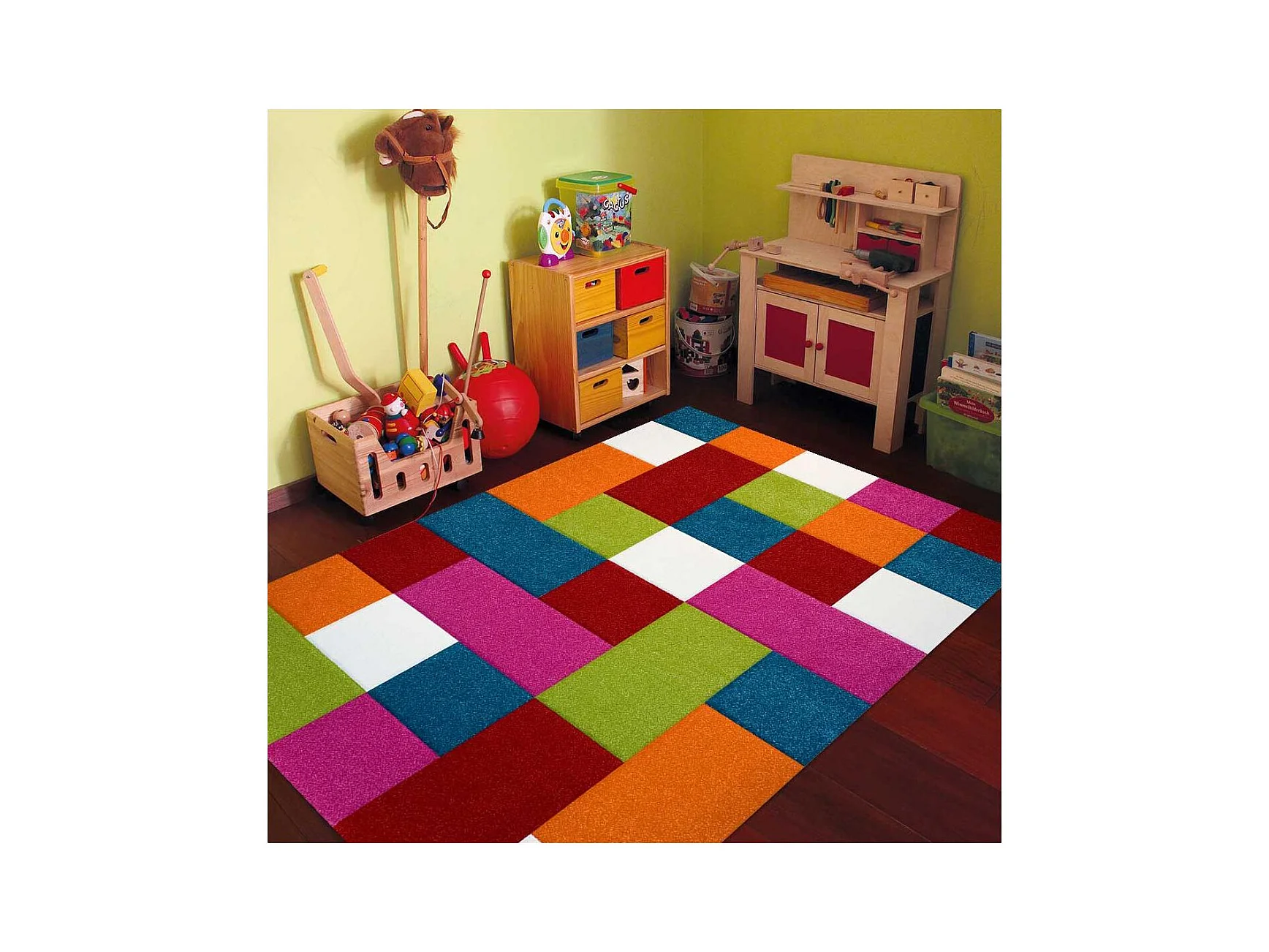 tapis chambre 160x230 tissé multicolore rectangle motif damier CARREAUX