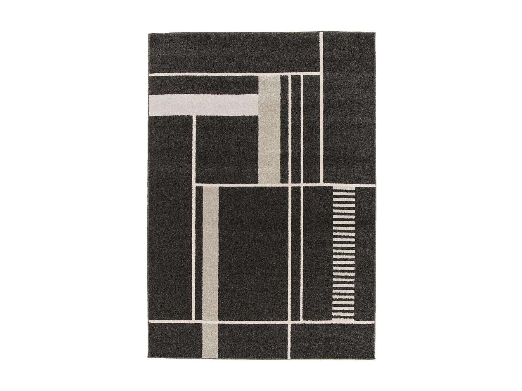 tapis salle à manger 160x230 tissé noir et beige rectangle motif géométrique