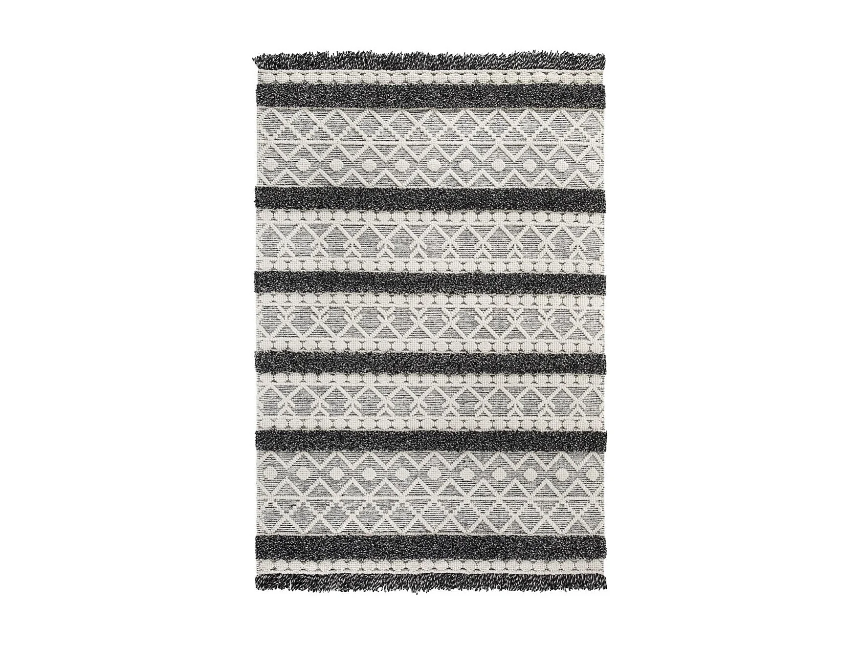 tapis chambre 160x230 tissé en laine crème rectangle motif ethnique NOUKA