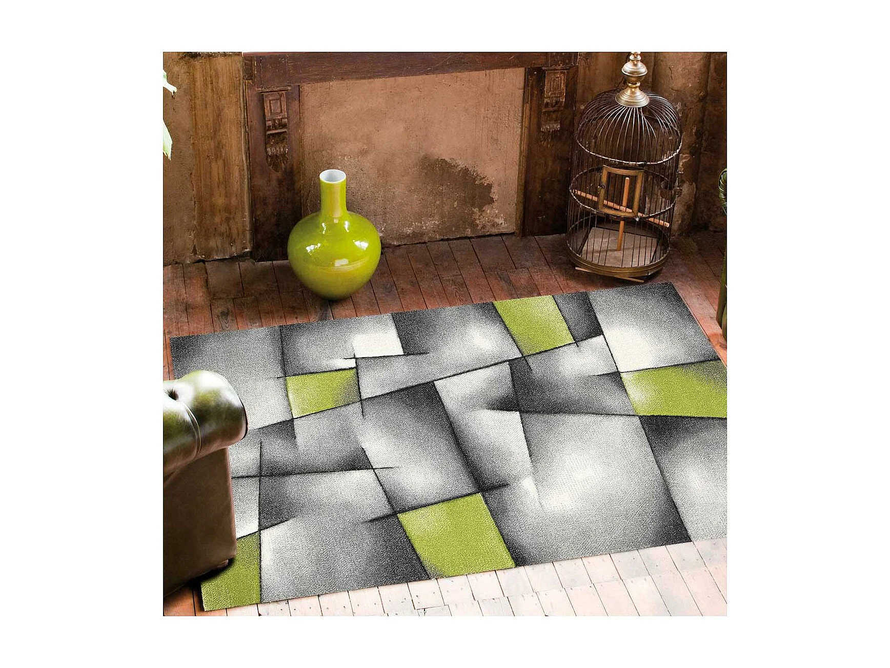 tapis salon 160x230 tissé vert rectangle motif géométrique PAR 3D