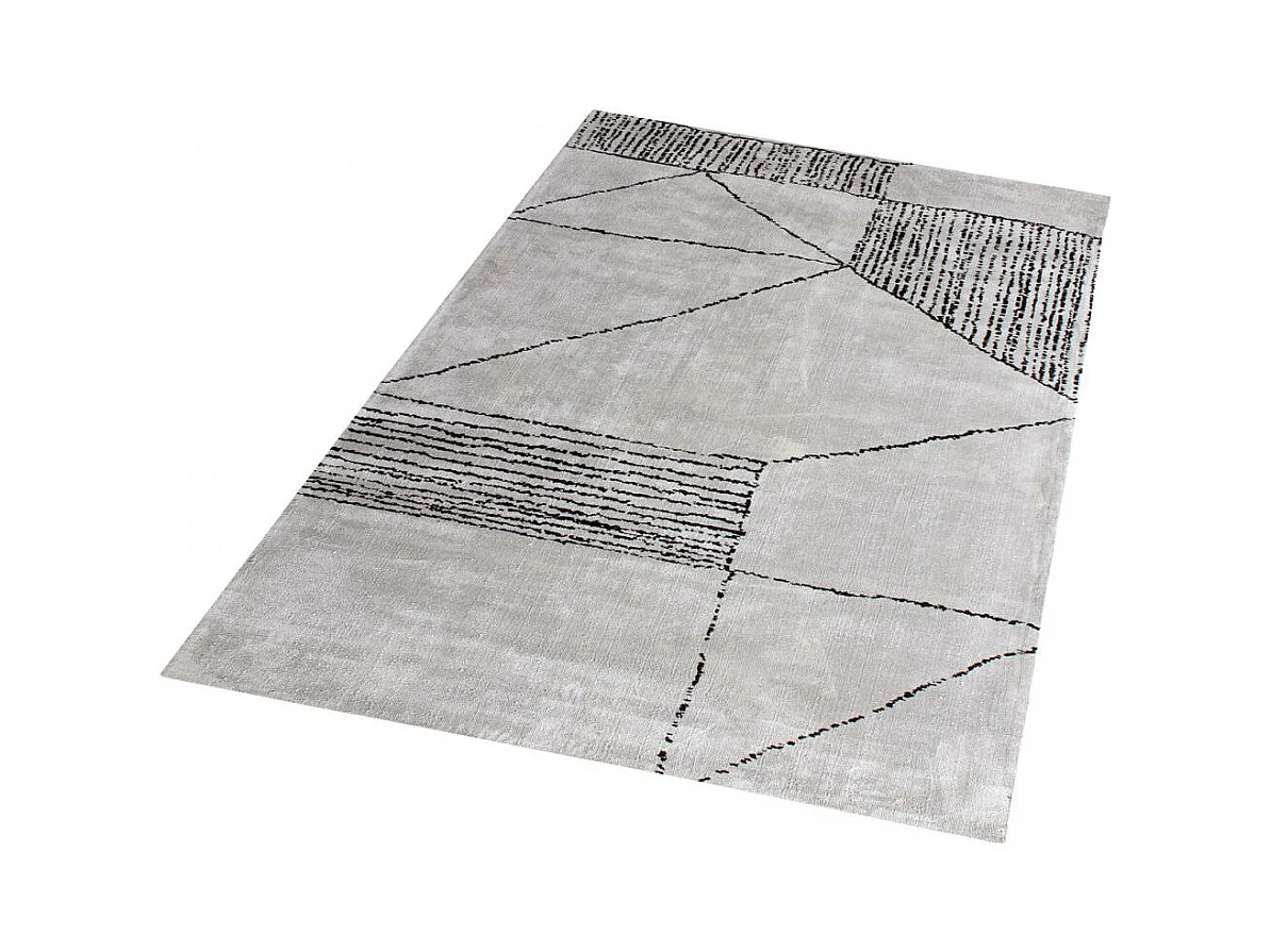 tapis chambre 160x230 fait à la main gris et noir rectangle motif géométrique