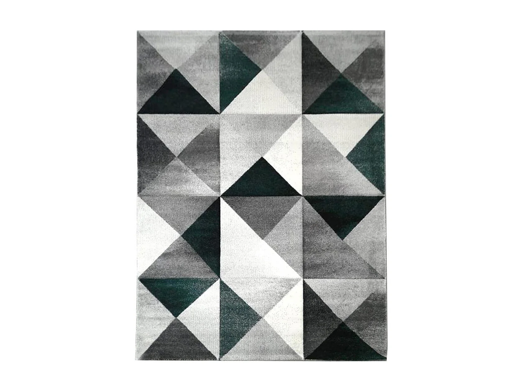 tapis salon 160x230 tissé gris et vert rectangle motif géométrique LYN8 TRANDOU