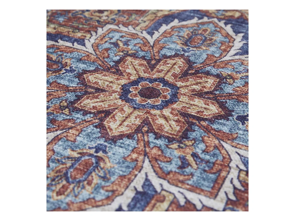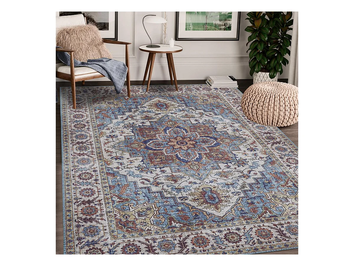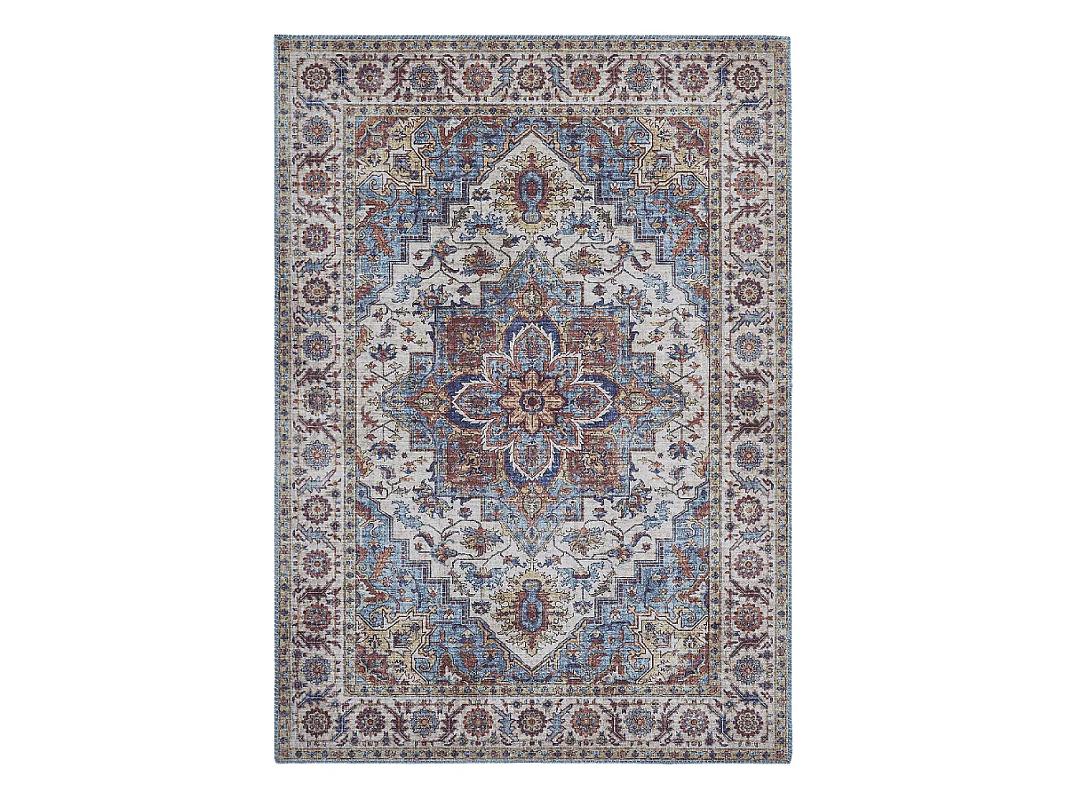 tapis salle à manger 200x290 tissé bleu et beige rectangle motif oriental