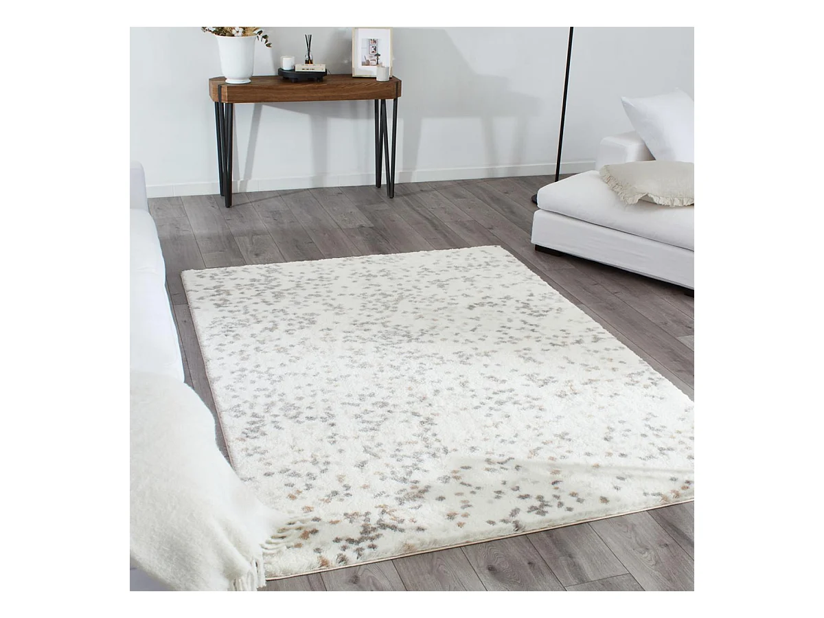 Tapis shaggy 160x230 rectangle tissé beige et blanc motif géométrique TEROVA 1