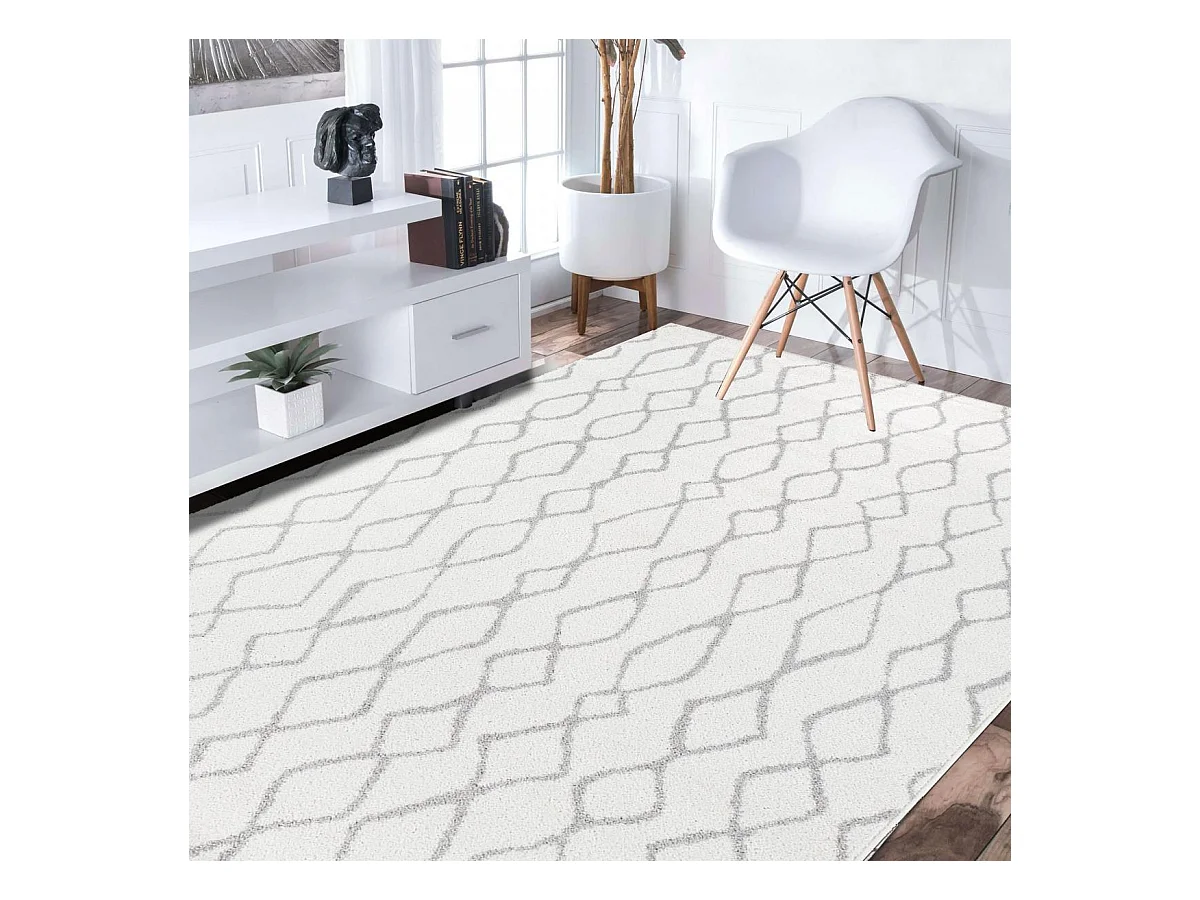 tapis chambre 160x235 tissé blanc et gris rectangle motif géométrique SPATA