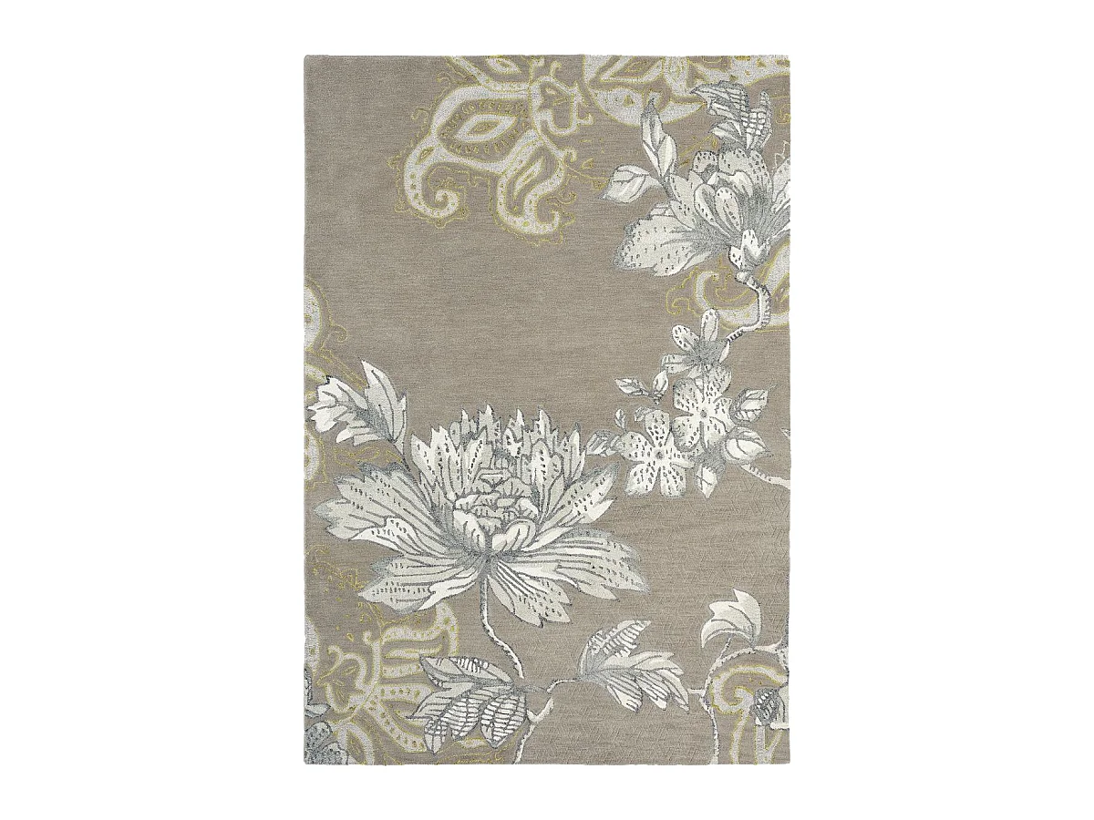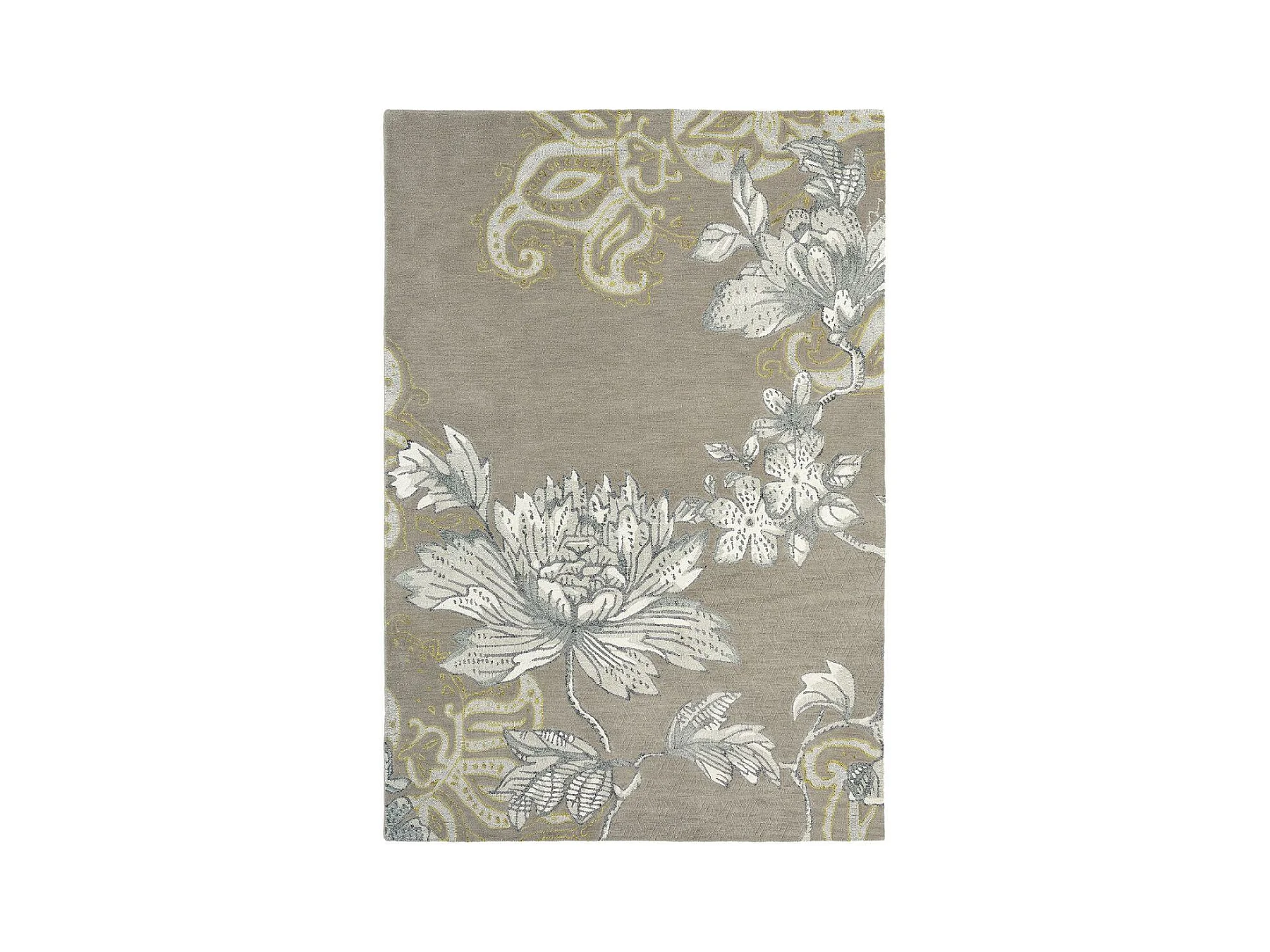 tapis salon 170x240 fait à la main en laine gris et crème rectangle motif floral