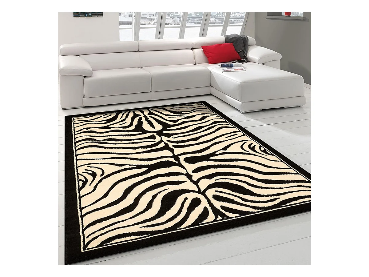 tapis chambre 190x280 tissé noir rectangle motif animaux ZEBRE