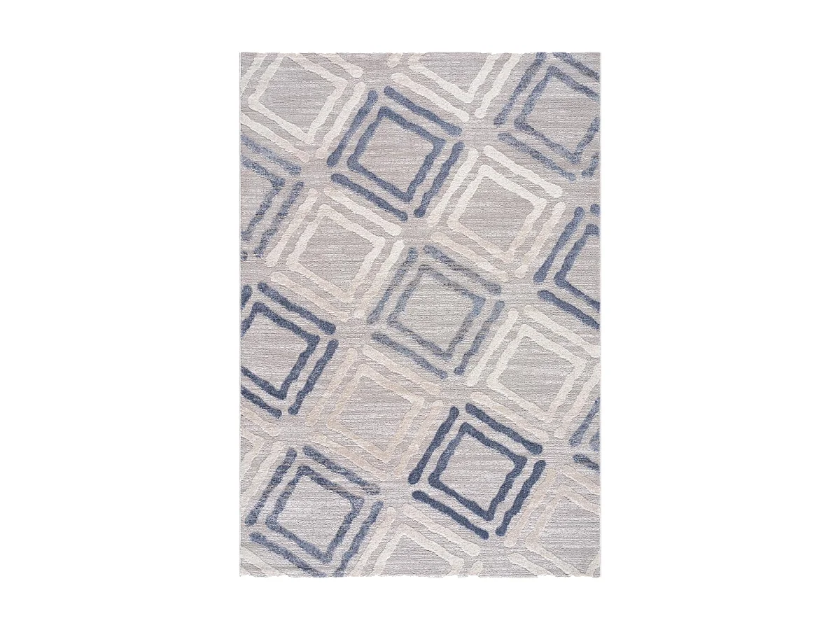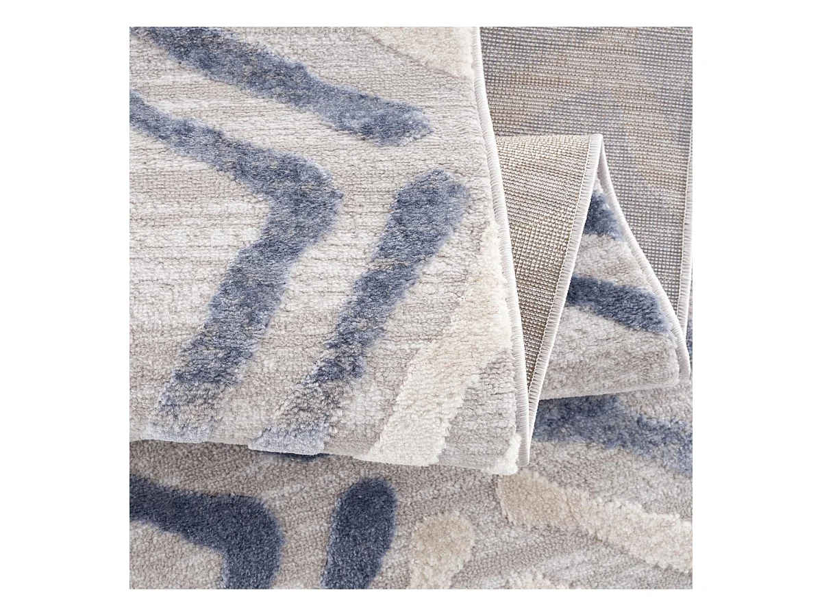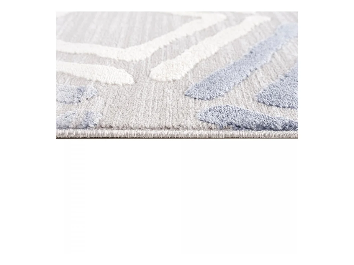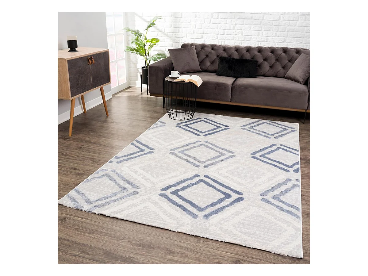 tapis salon 200x280 tissé gris clair et bleu rectangle motif géométrique DOUCA