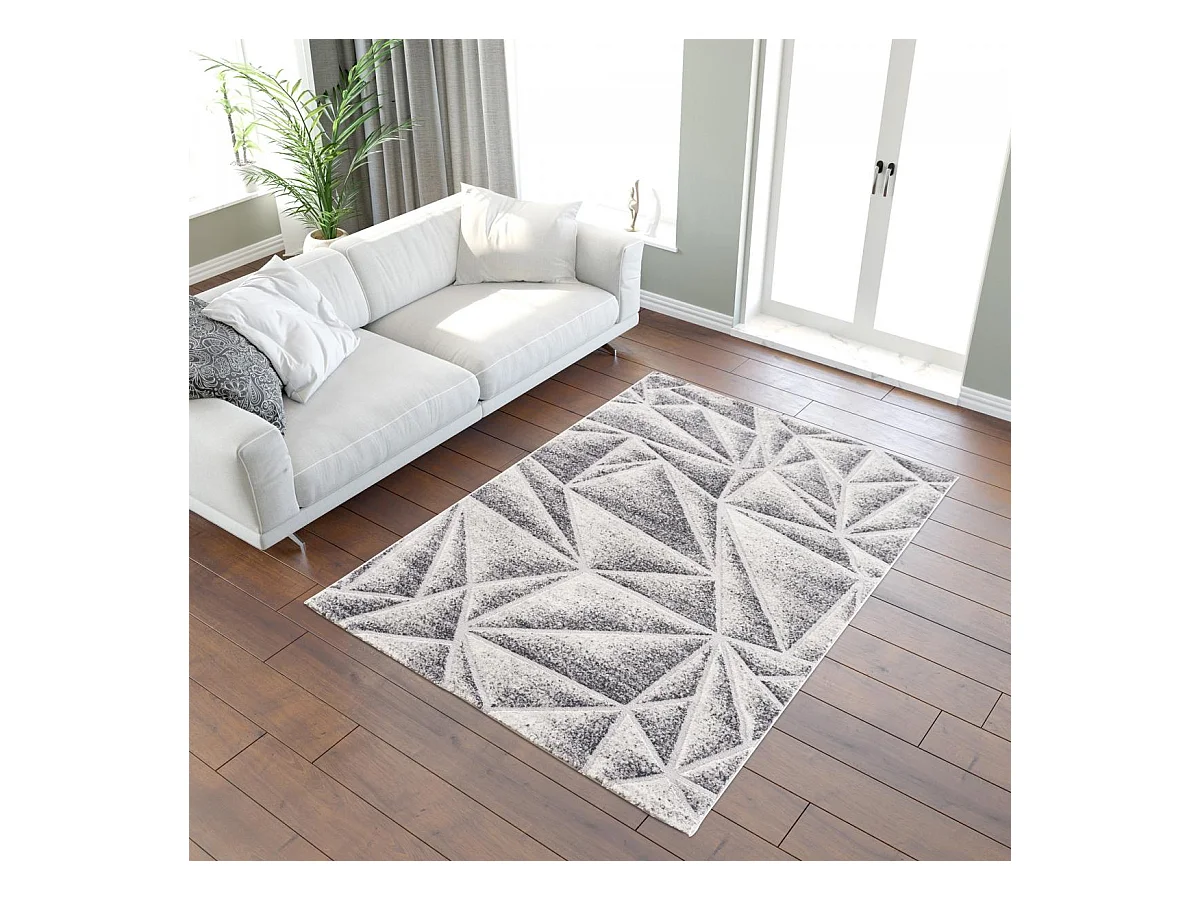 tapis salon 200x280 tissé gris rectangle motif géométrique ORI
