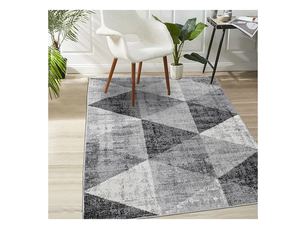 tapis salon 200x280 tissé gris rectangle motif géométrique ORI