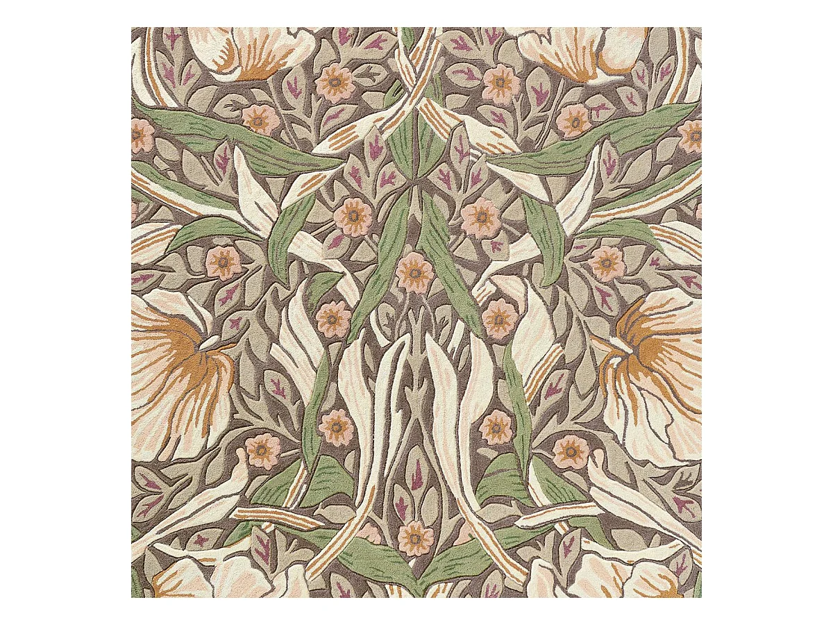 tapis salon 200x280 fait à la main en laine aubergine et vert motif floral