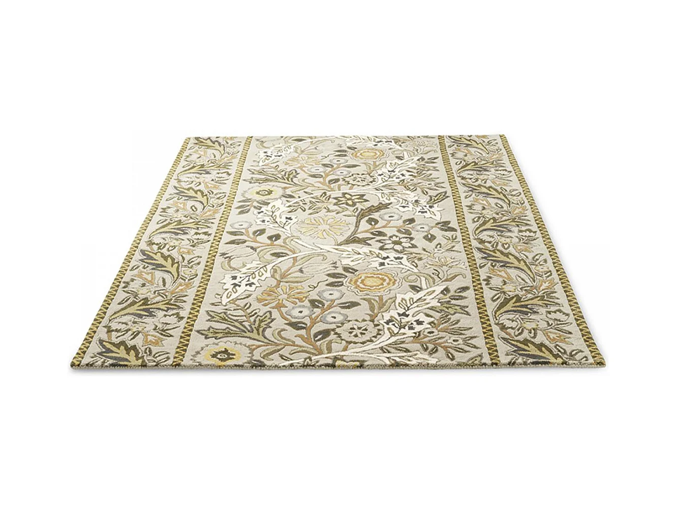 tapis salon 200x280 fait à la main en laine beige et jaune moutarde