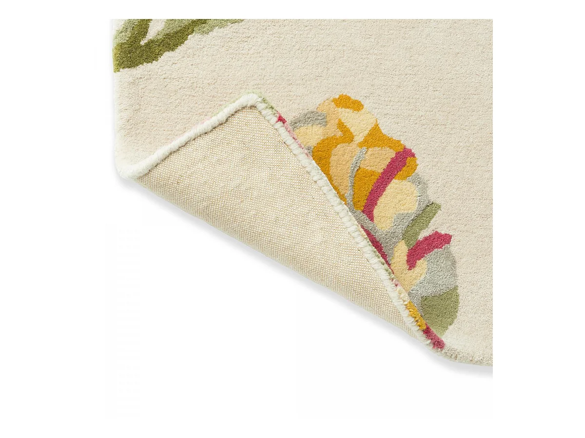 tapis salon 200x280 fait main en laine crème et vert rectangle motif floral