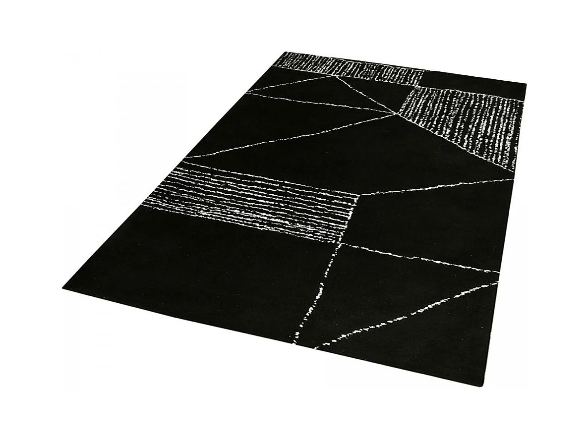 tapis salon 200x290 fait à la main noir et blanc rectangle motif géométrique