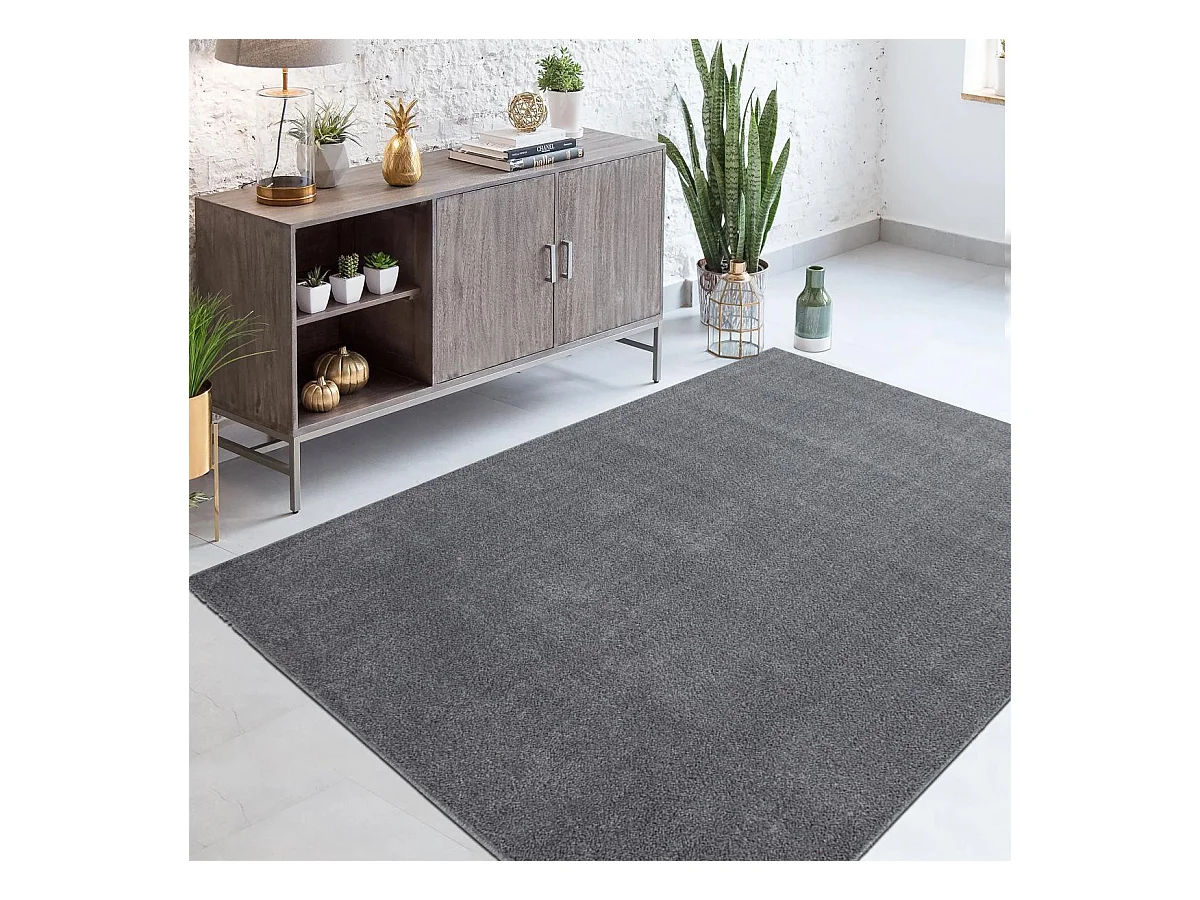 tapis salon 200x290 tissé gris clair rectangle motif uni SOULA
