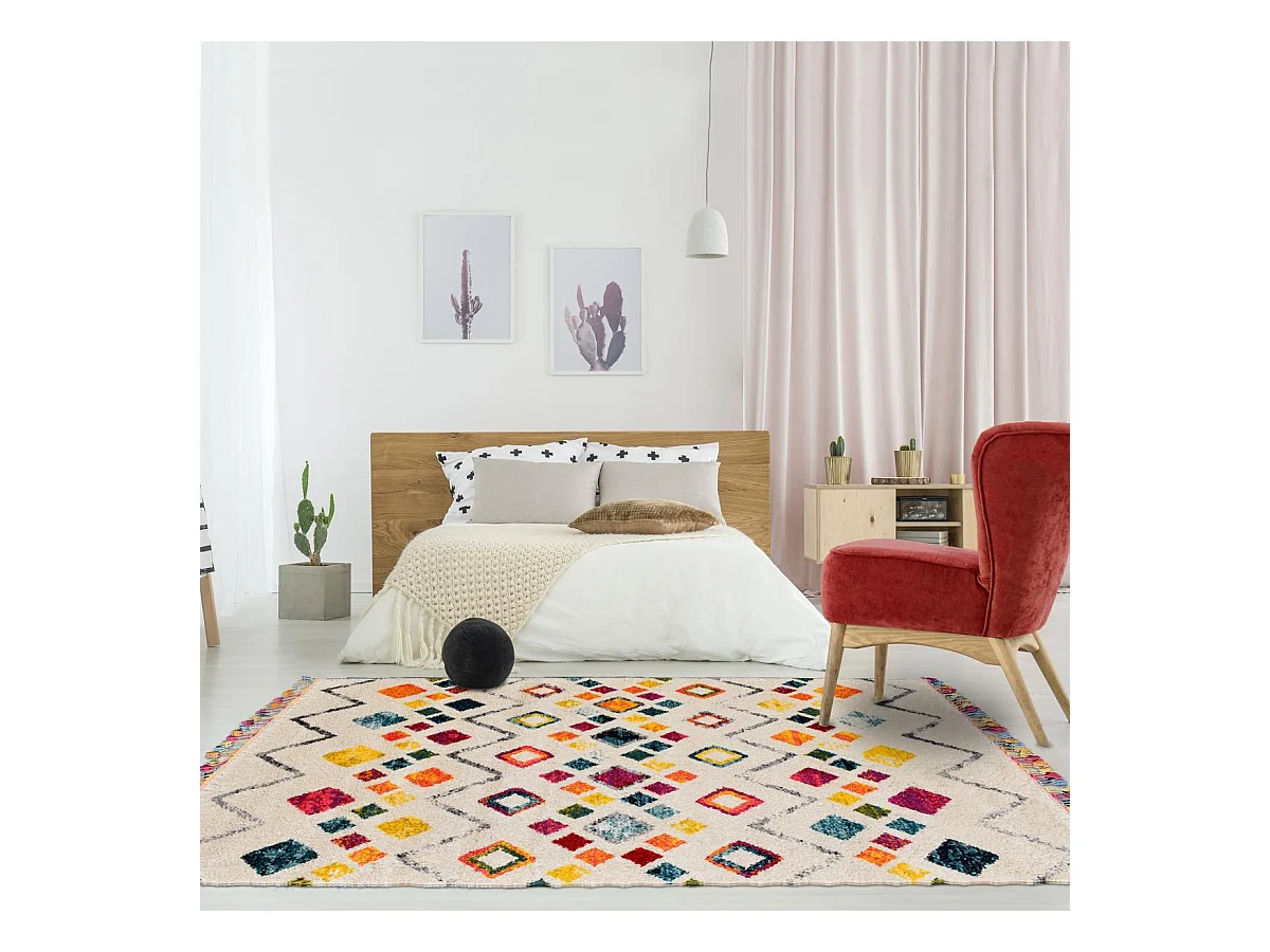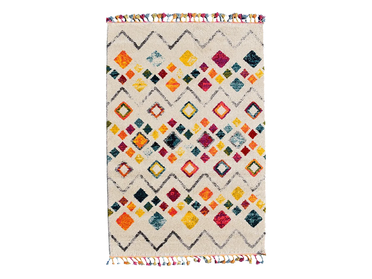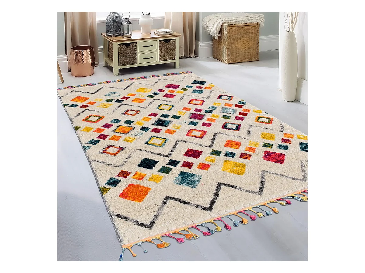 tapis berbère 200x290 tissé crème et jaune LYN5 OURIKA