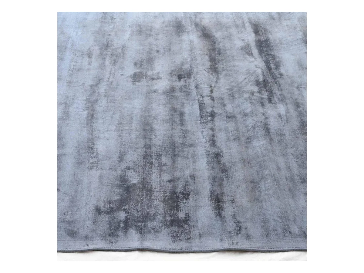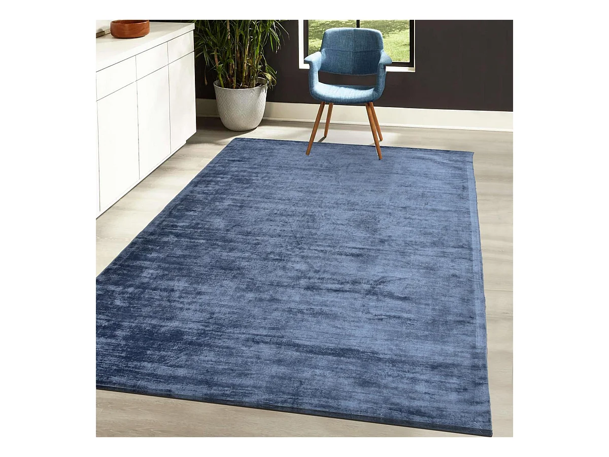 tapis salon 200x300 fait à la main en viscose bleu petrole rectangle motif uni