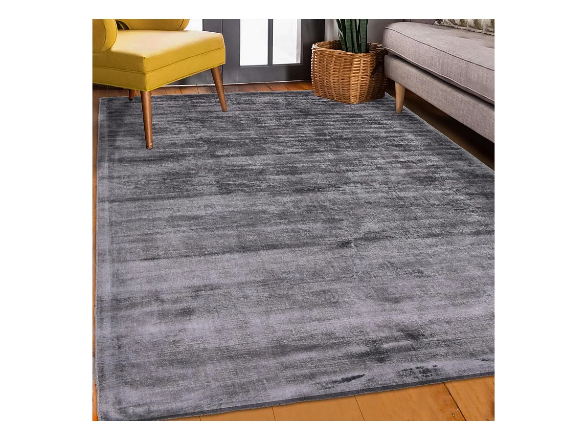 tapis salon 200x300 fait à la main en viscose noir rectangle motif uni NEO +