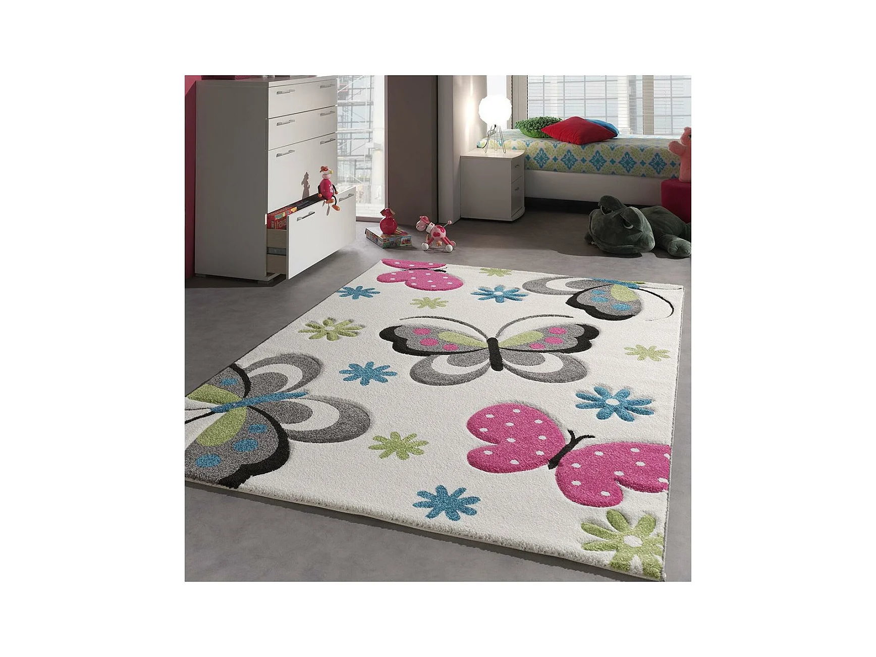 tapis chambre 240x340 tissé crème rectangle motif animaux BUTERFLY