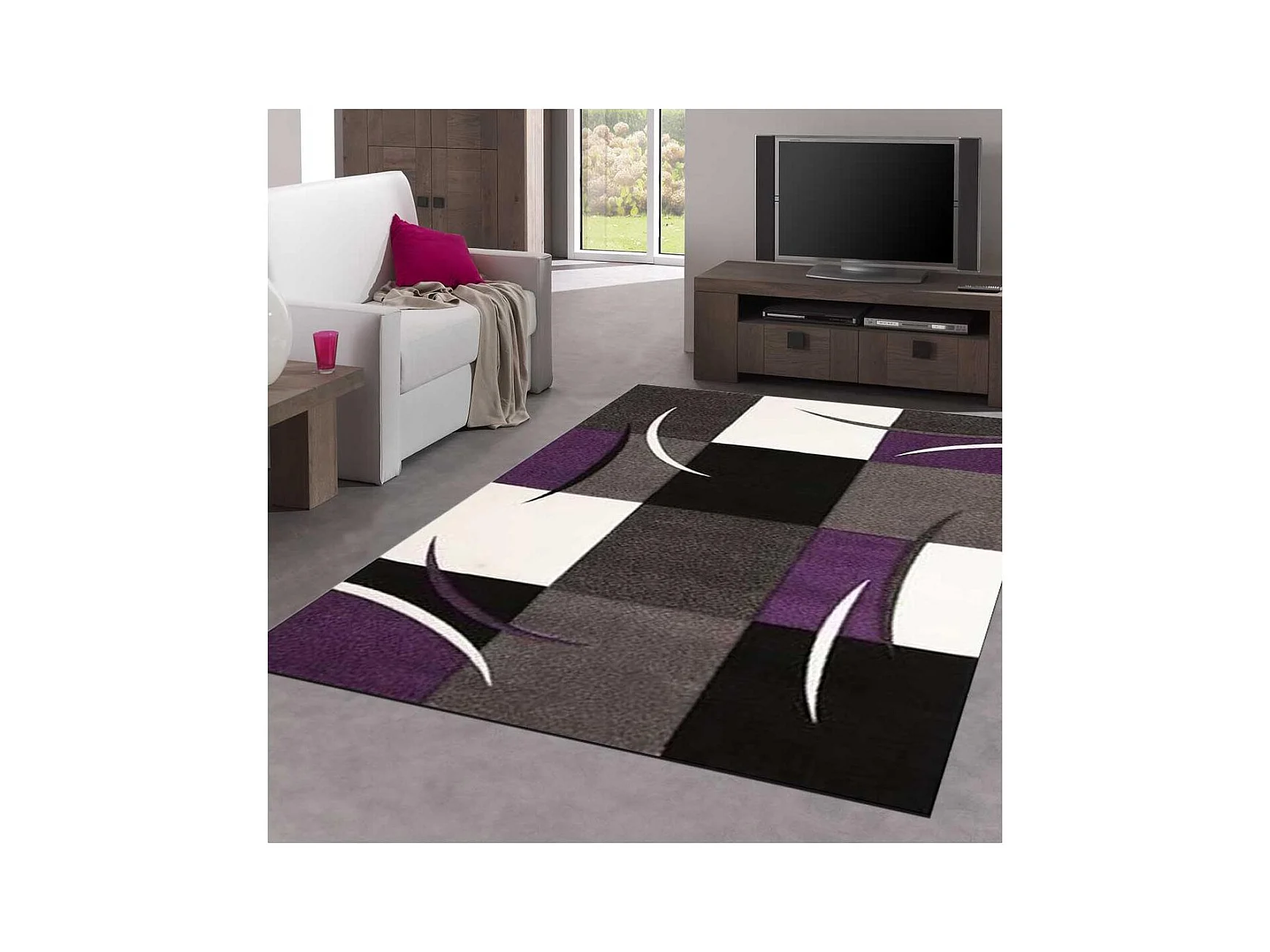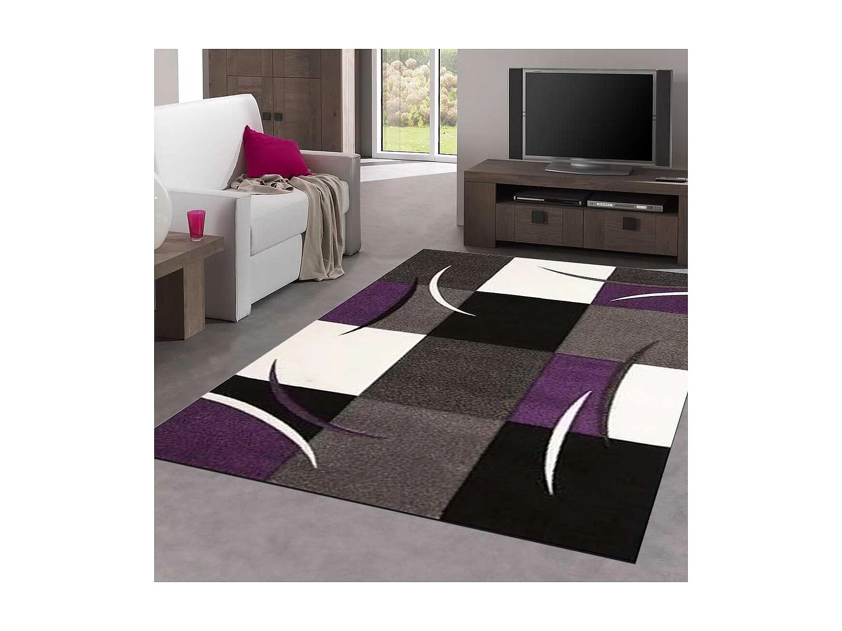 tapis salle à manger 240x340 tissé violet rectangle motif damier LYN8 COMMA