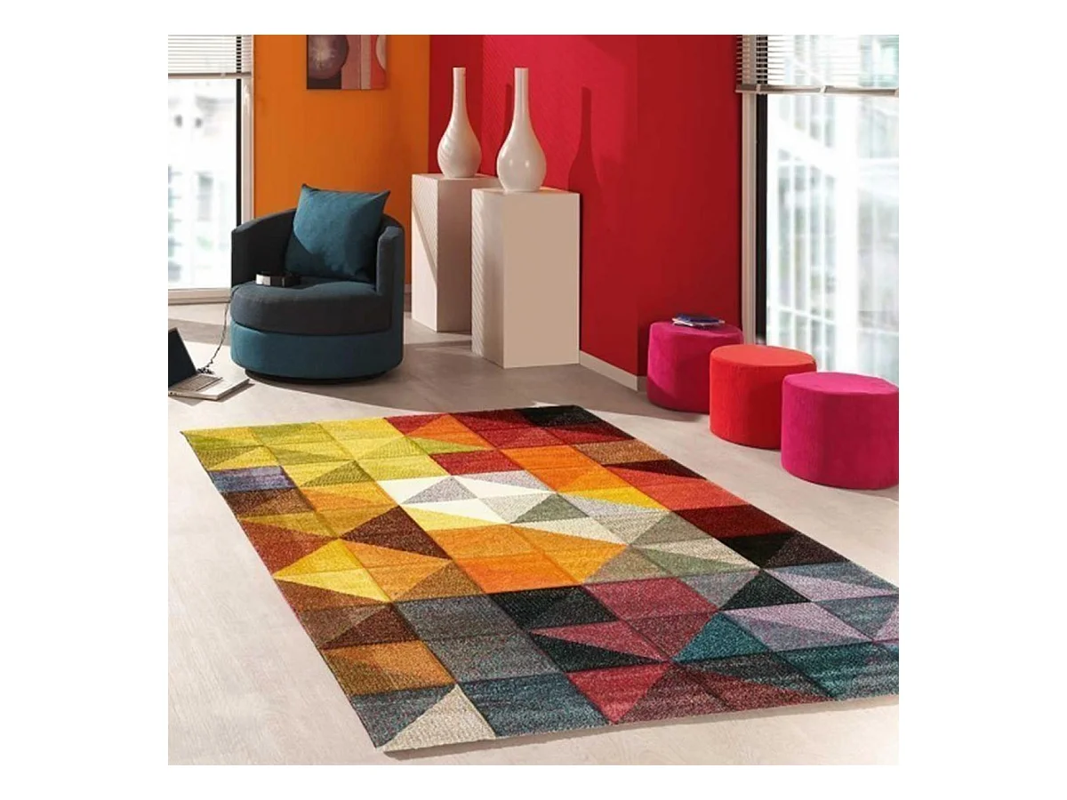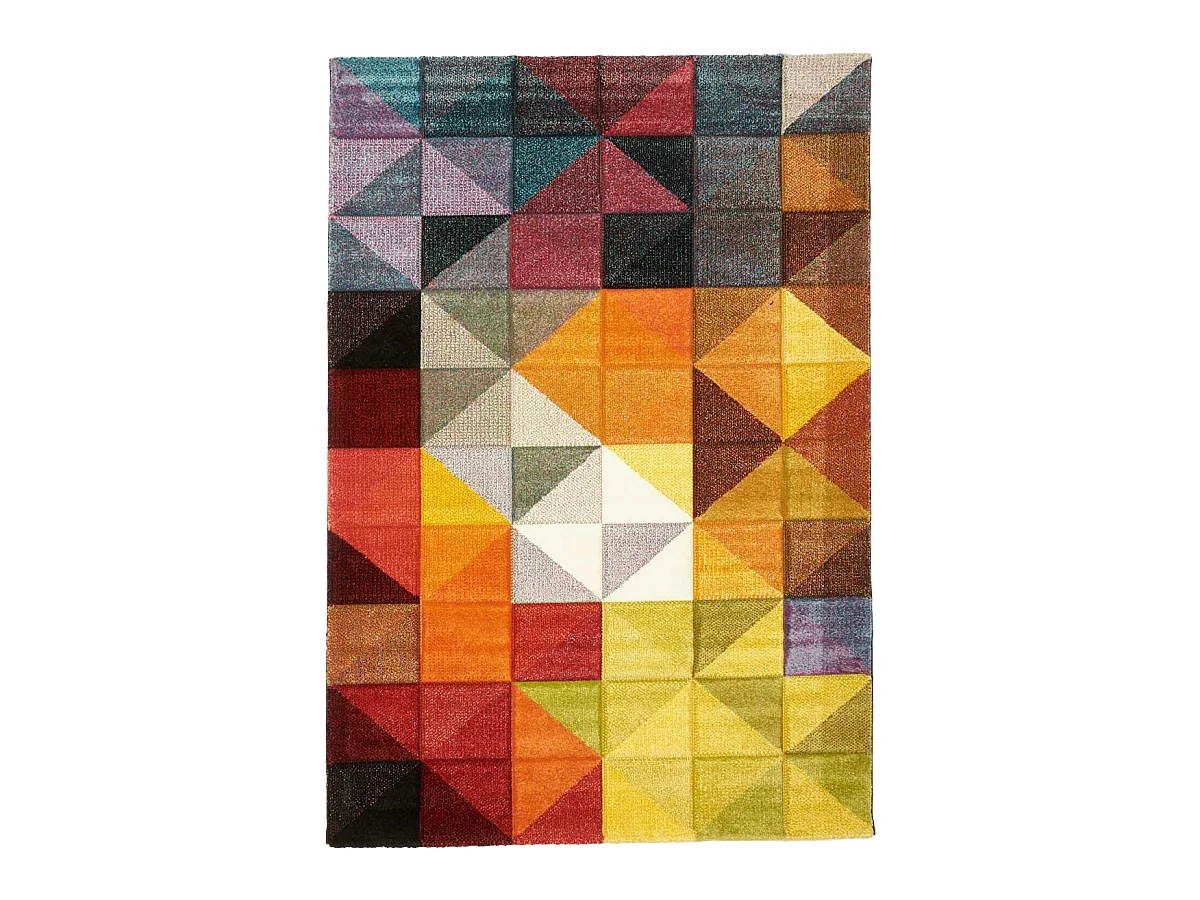 tapis salle à manger 240x340 tissé noir et rouge rectangle motif géométrique