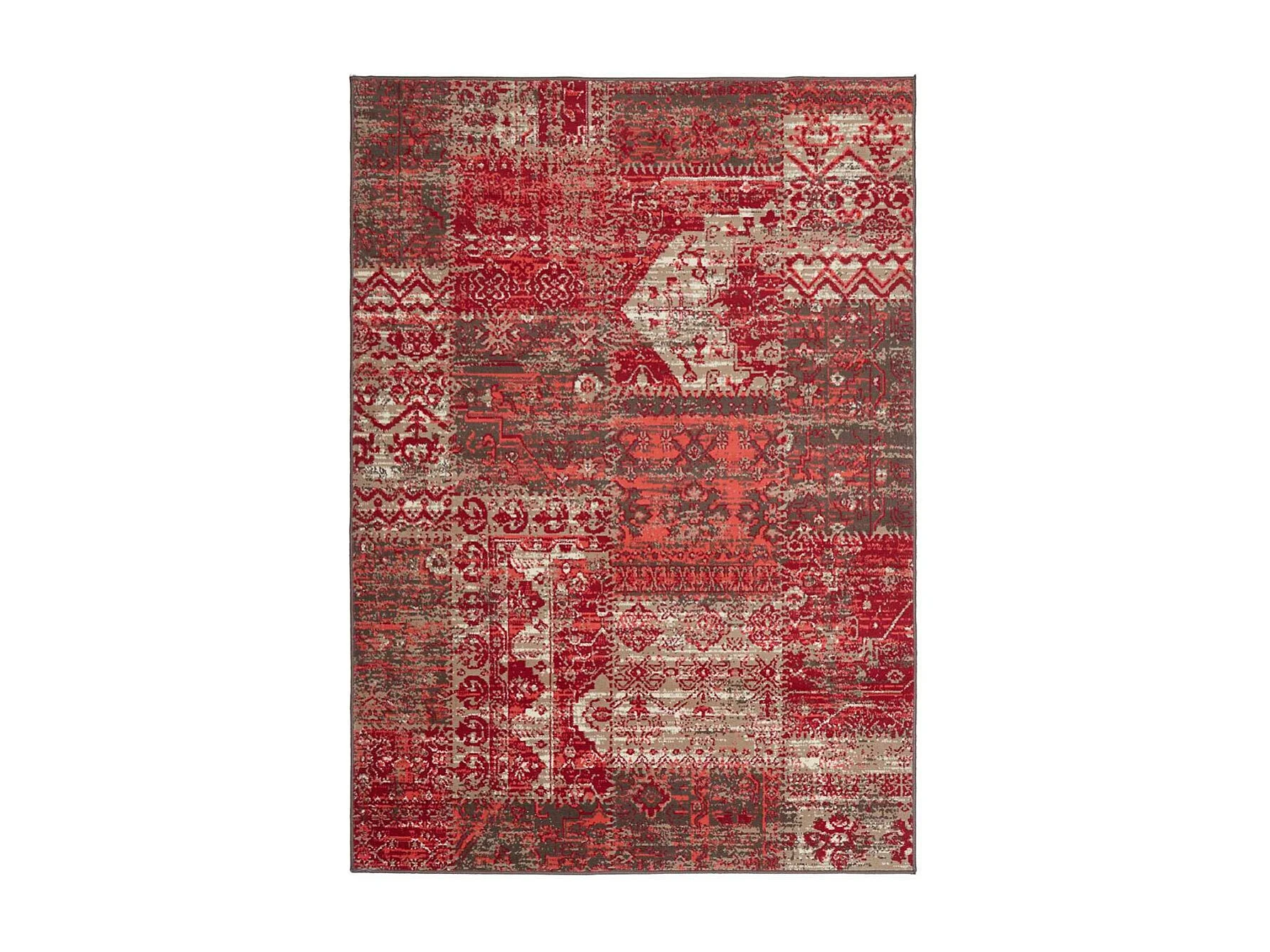 tapis grand salon 270x370 tissé rouge rectangle motif ethnique LYN1 PATWORK
