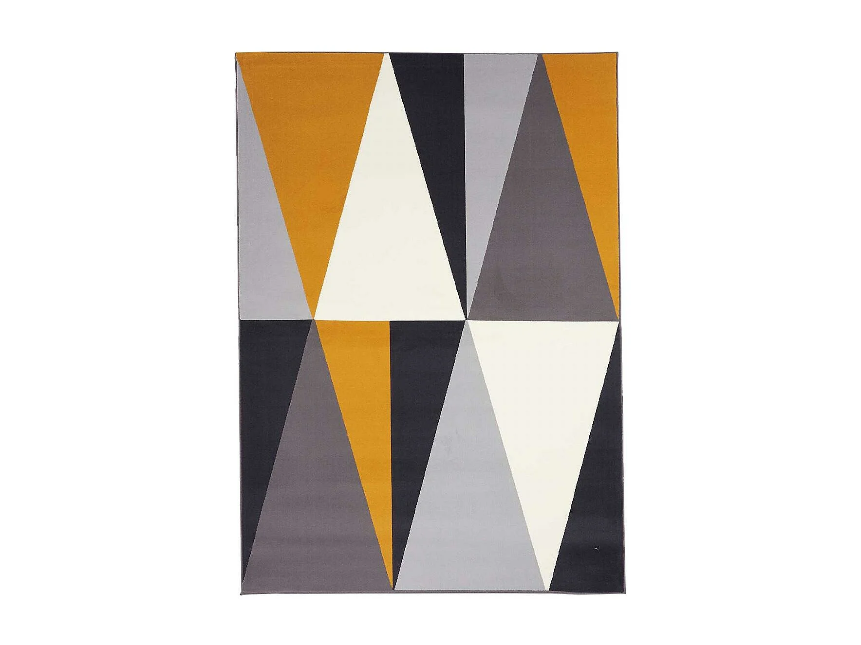 tapis grand salon 270x370 tissé jaune et gris rectangle motif géométrique