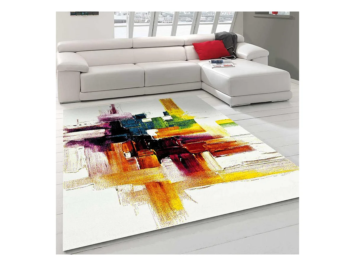 tapis chambre 80x150 tissé blanc cassé rectangle motif abstrait LYN1 MALMO