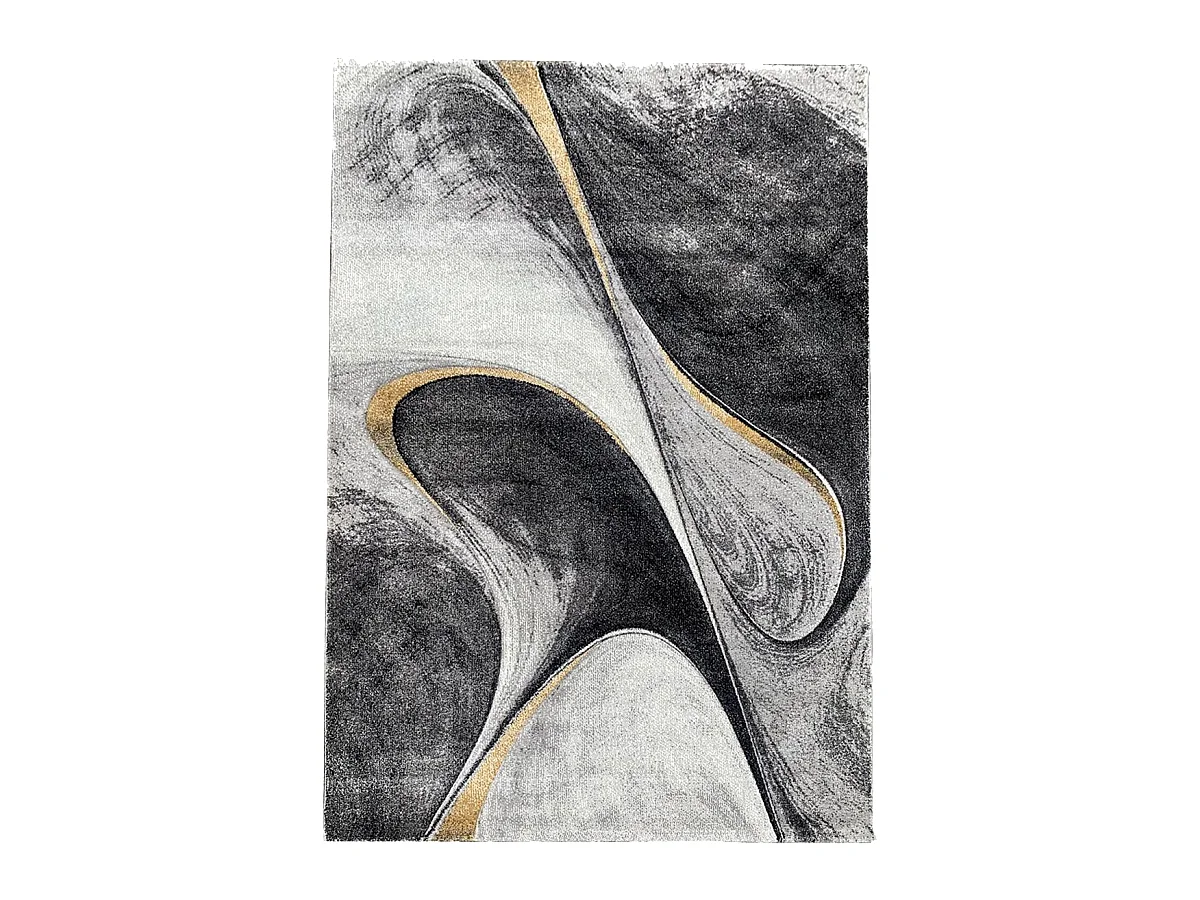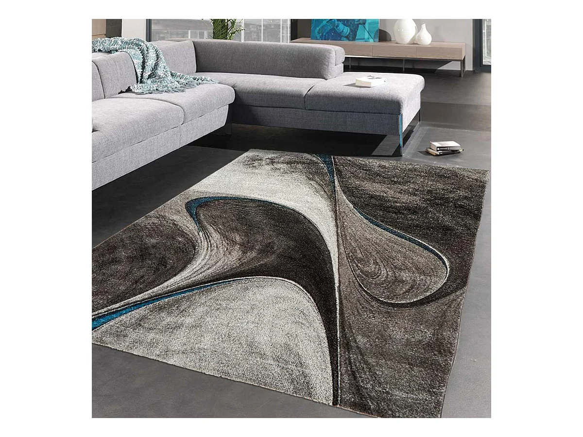 tapis salon 160x225 tissé noir rectangle motif géométrique LYN1 VAGUES