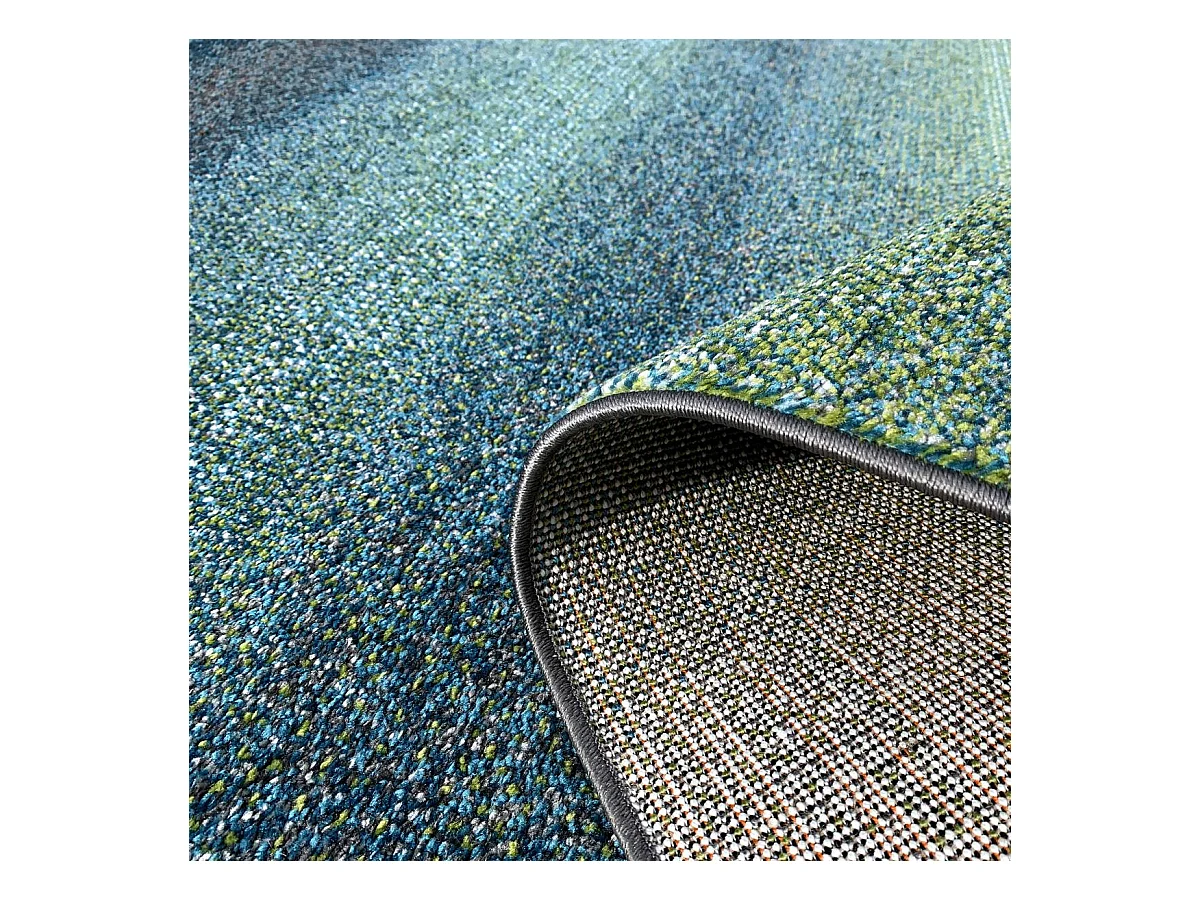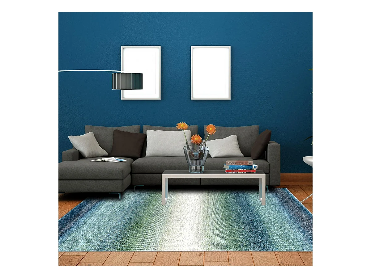 tapis chambre 60x110 tissé bleu et bleu clair rectangle motif géométrique BRADO