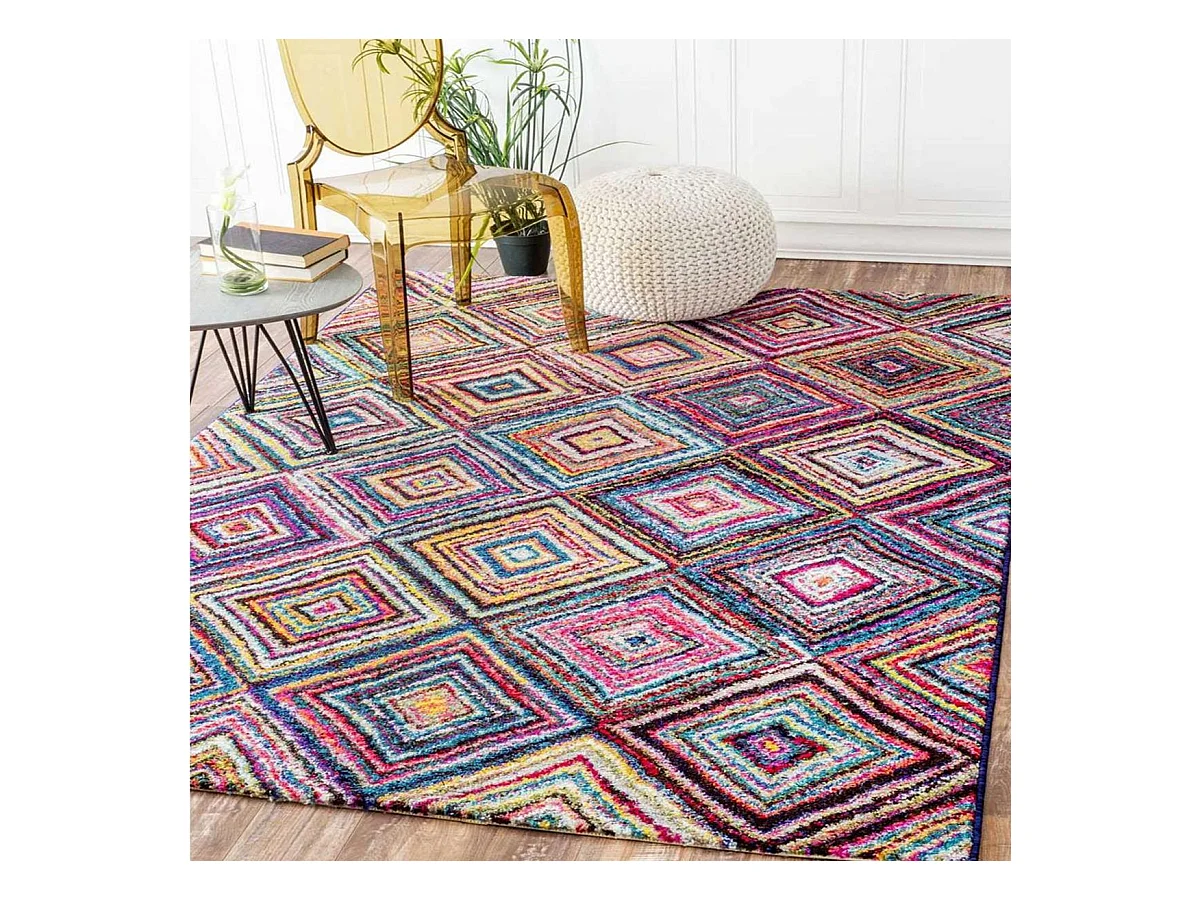 tapis entrée 60x110 tissé multicolore rectangle motif géométrique LYN6 CARI
