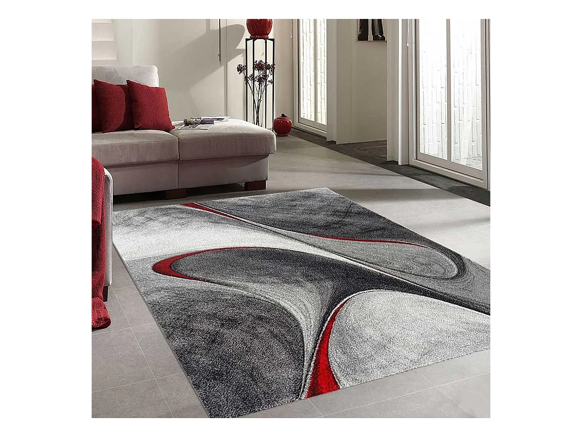 tapis de couloir 80x150 tissé rouge et gris motif géométrique CARARELLE