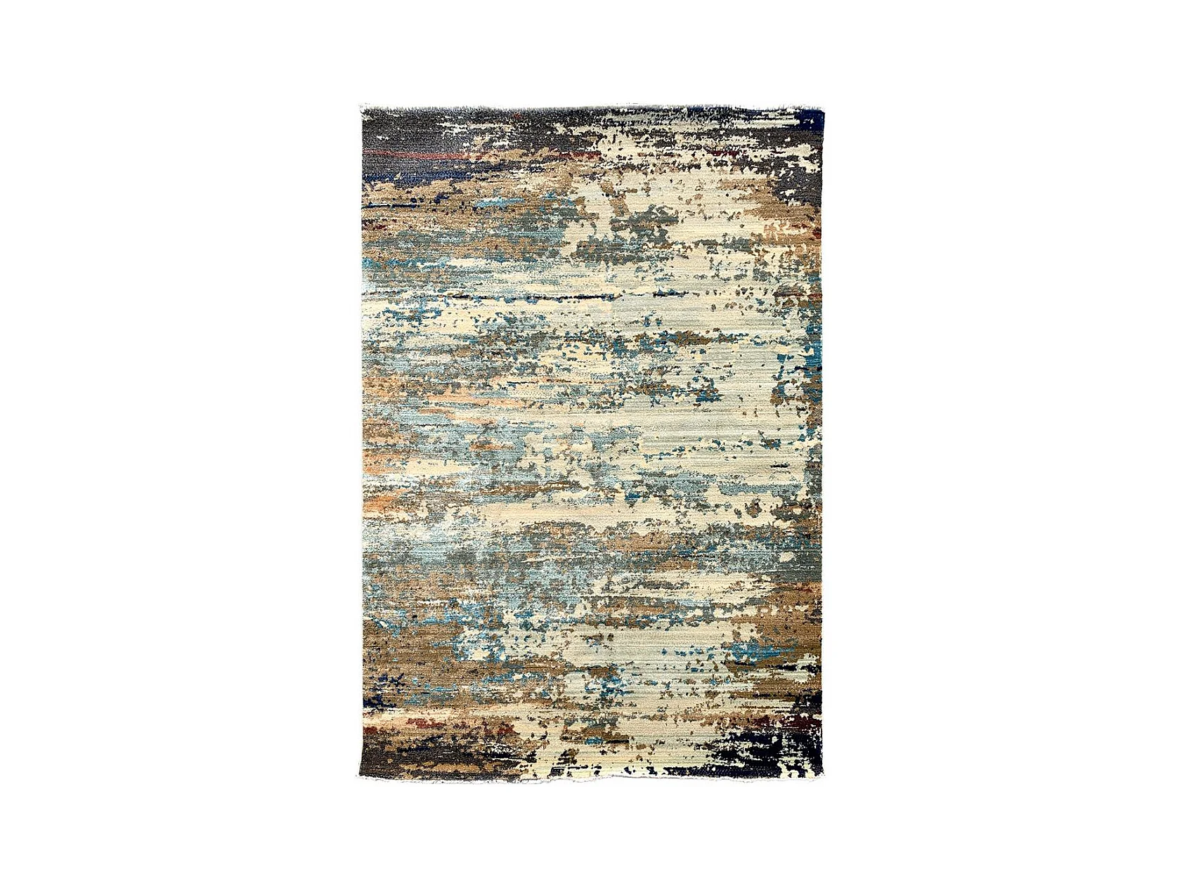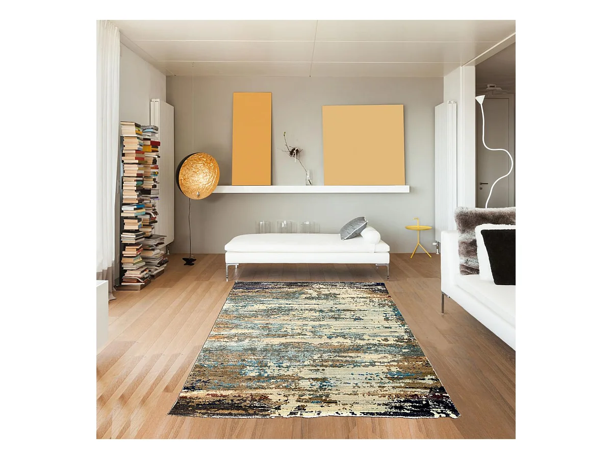 tapis chambre 60x110 tissé marron et beige rectangle motif abstrait OEUVRO