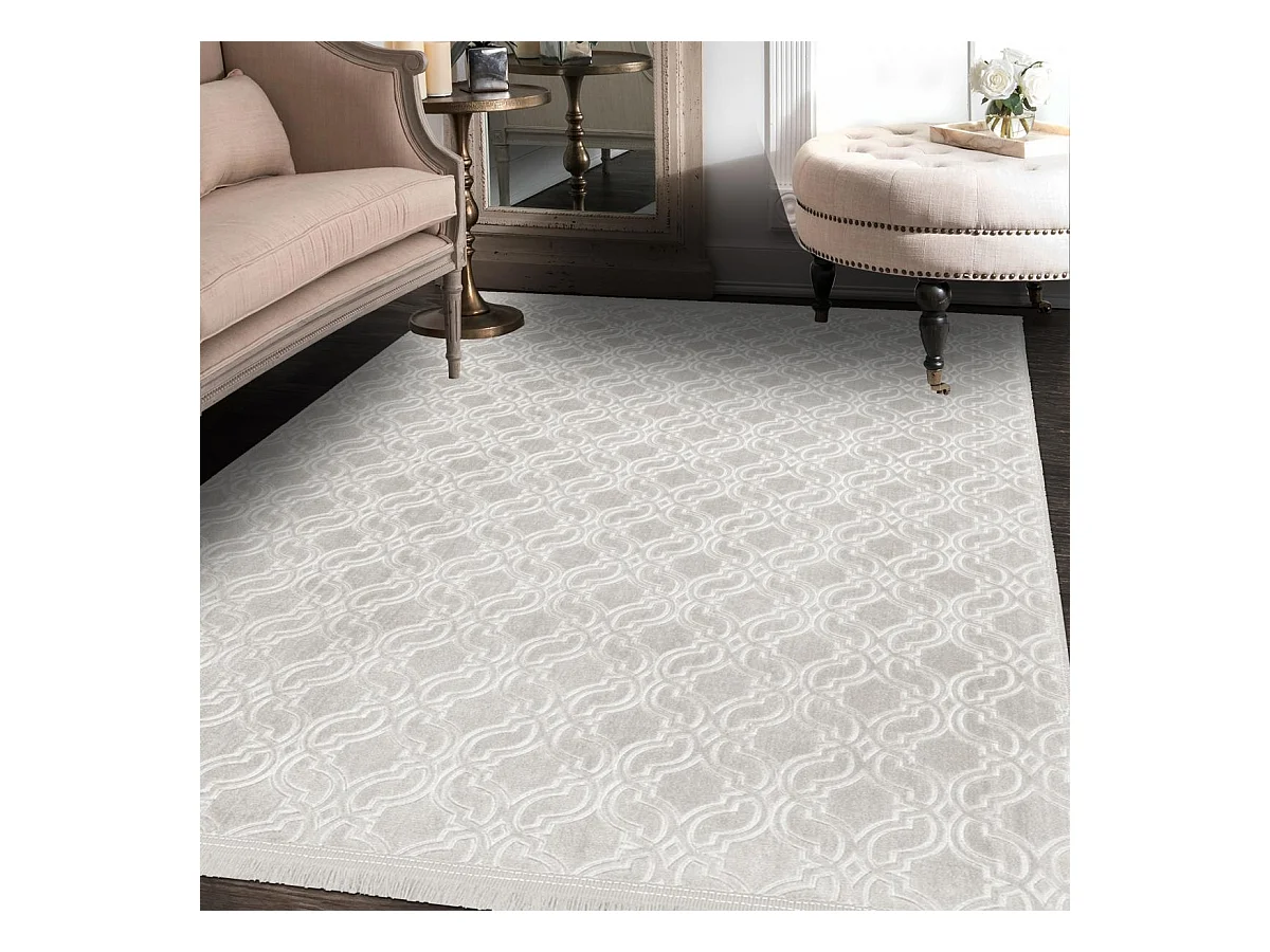 tapis grand salon 200x290 tissé beige rectangle motif faux uni GLACIA 1