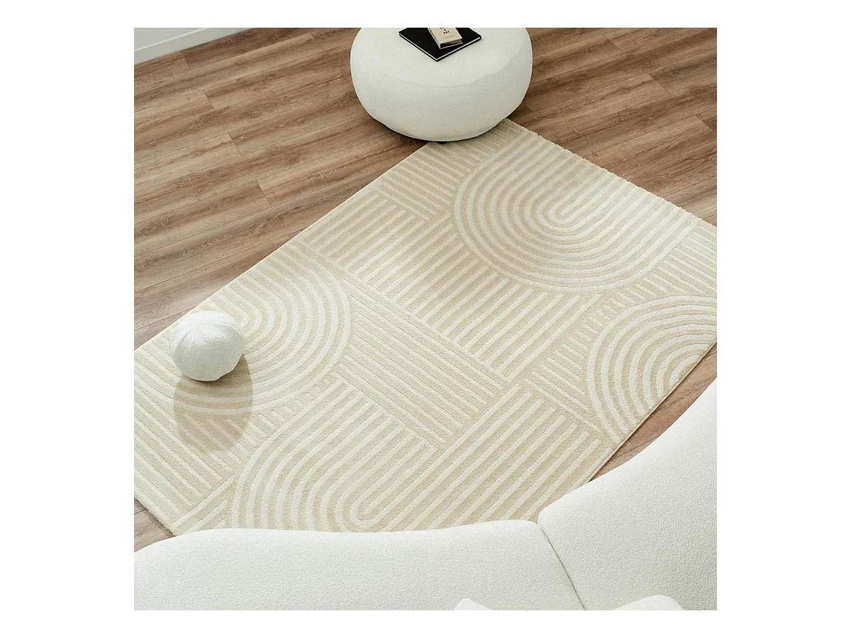 tapis chambre 80x150 tissé crème rectangle motif géométrique CERABI