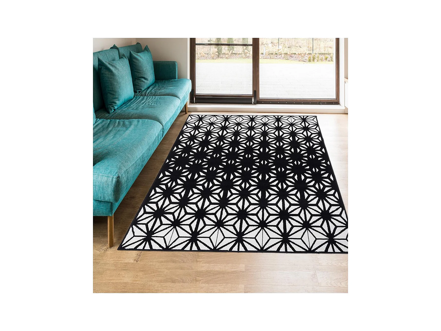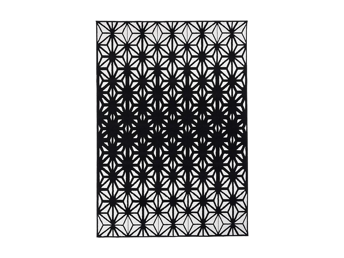 tapis chambre 80x150 tissé noir rectangle motif géométrique LYN1 RECTO