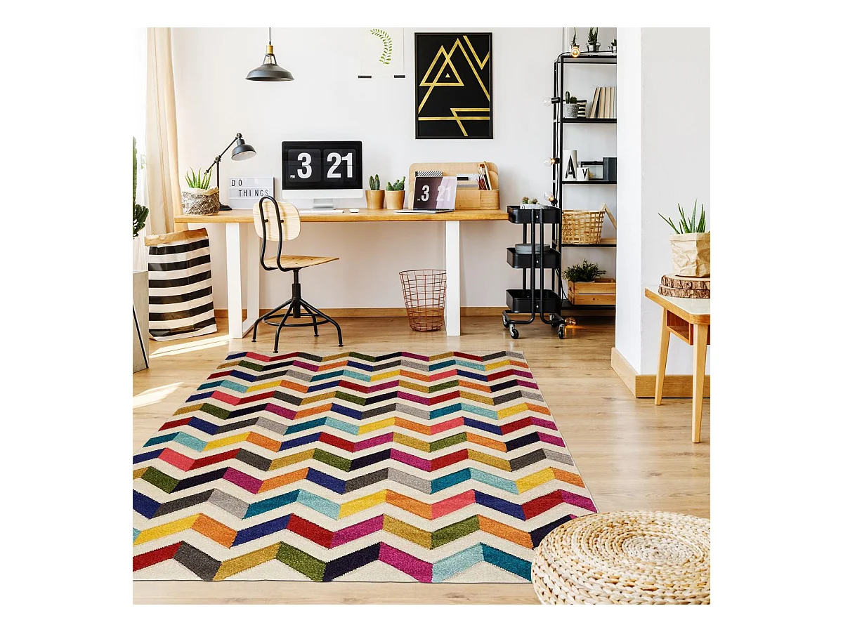 tapis chambre 80x150 tissé multicolore rectangle motif géométrique LYN6 CHEVRON