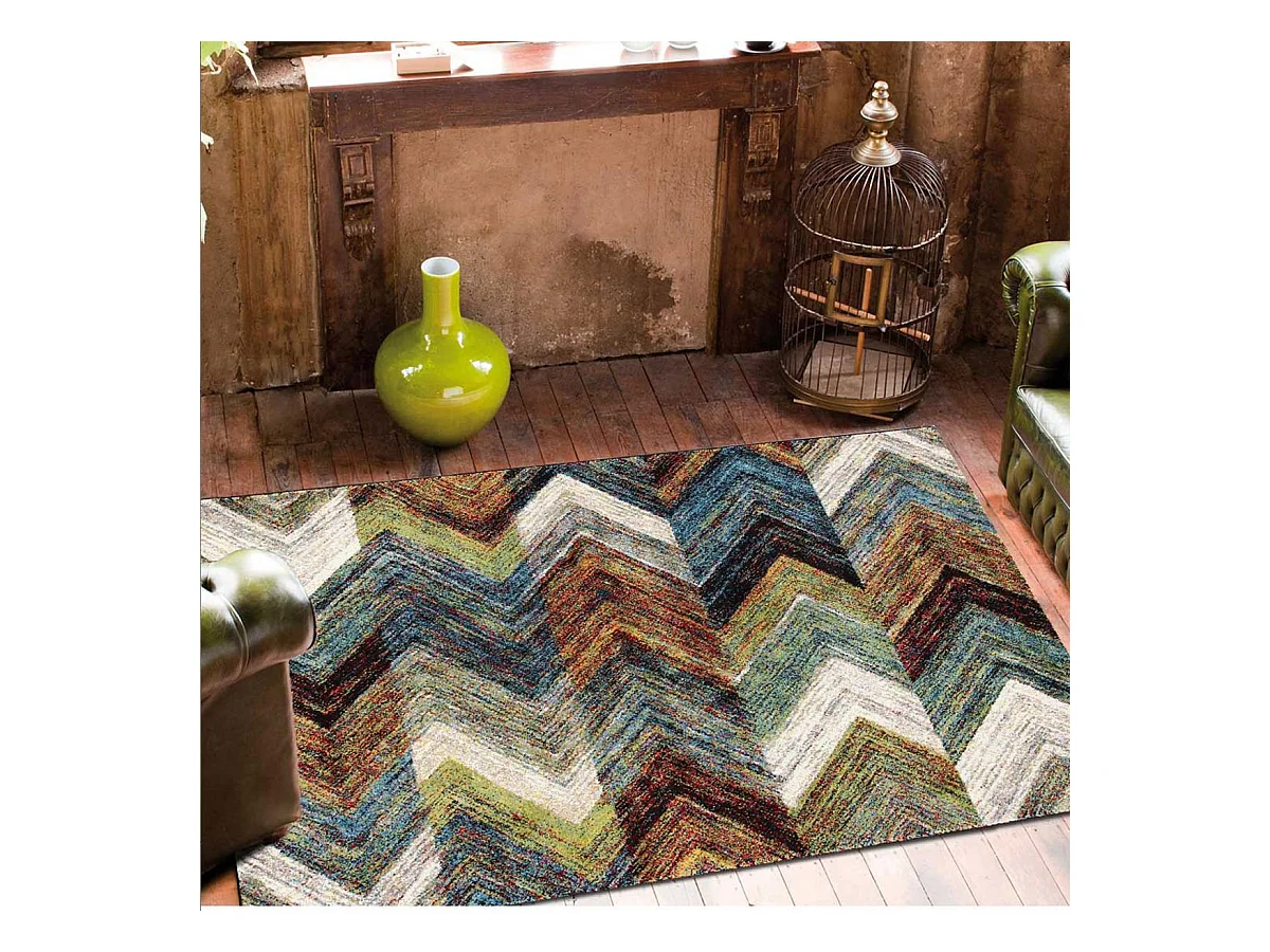 tapis chambre 80x150 tissé bleu rectangle motif géométrique COLORS